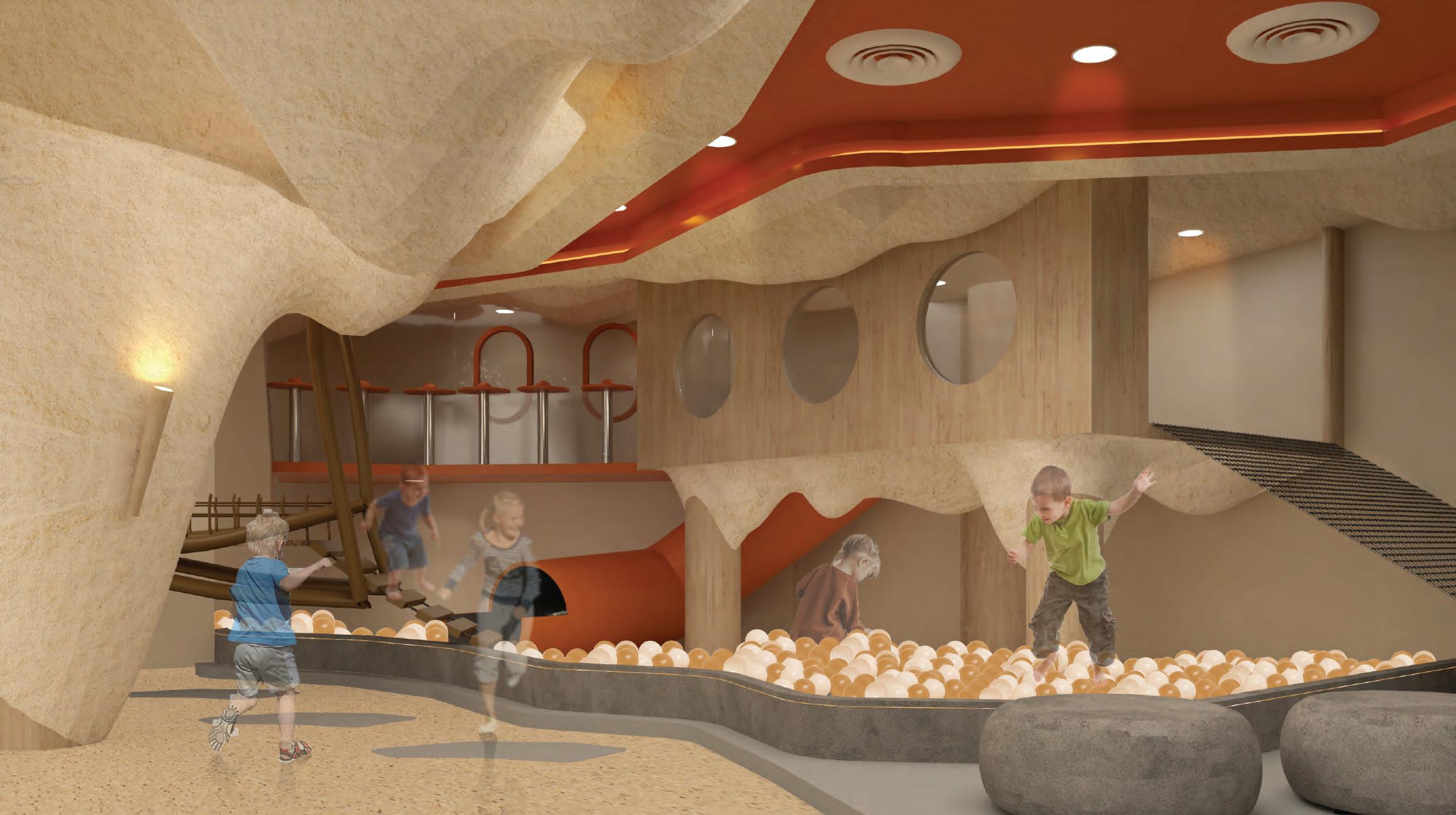 Reception, Showcase space, Kid’s retail shop Office, First Aid Front office, Co - working space, Canteen