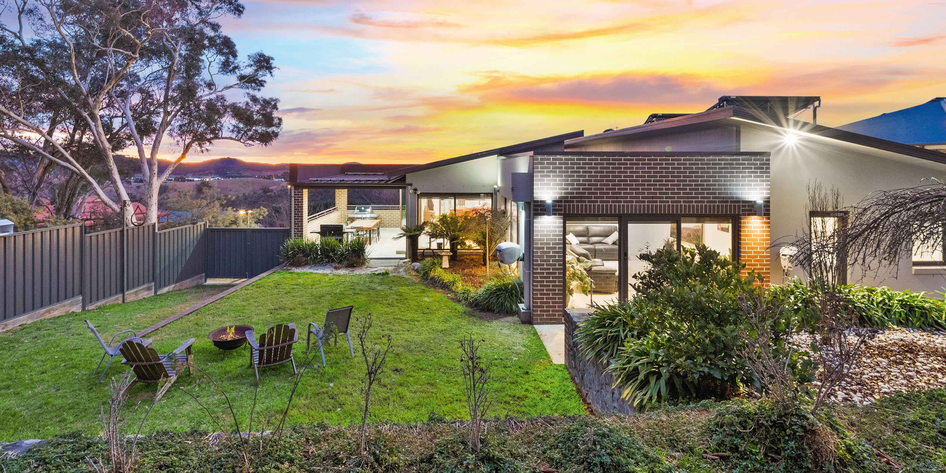 Architectural design, impeccable craftsmanship and smart sustainability come together in this masterpiece home. From its elevated position, you’ll have 270-degree views over Canberra, greeting the sunrise from the main bedroom’s balcony and watching it dip below the horizon over drinks in the backyard. A hydronically heated concrete slab between levels, double glazing and a solar-passive design ensure summers stay cool and winters warm.