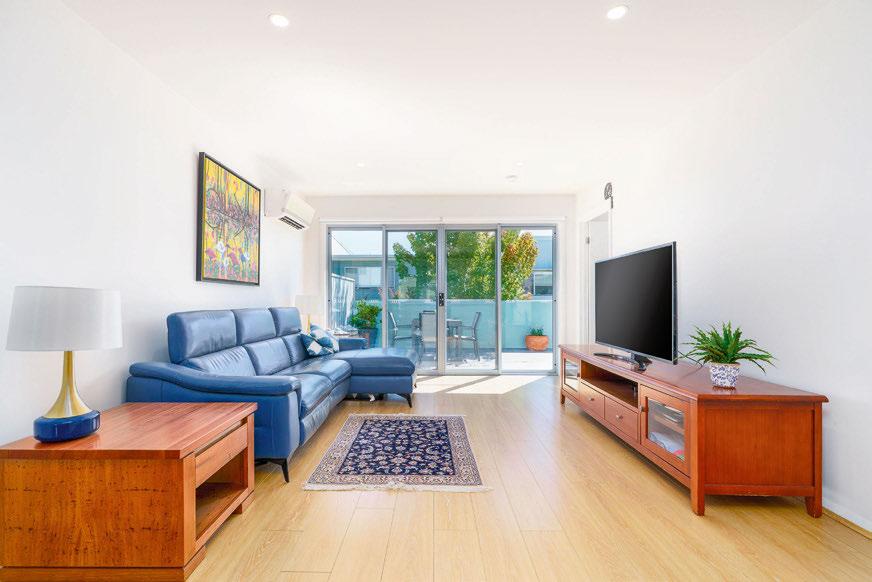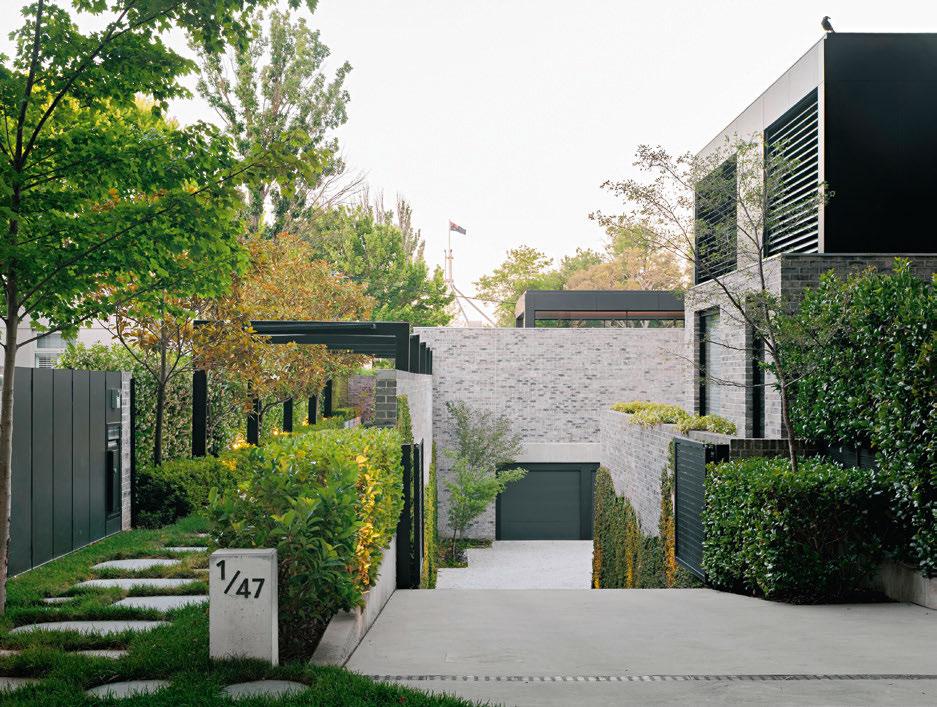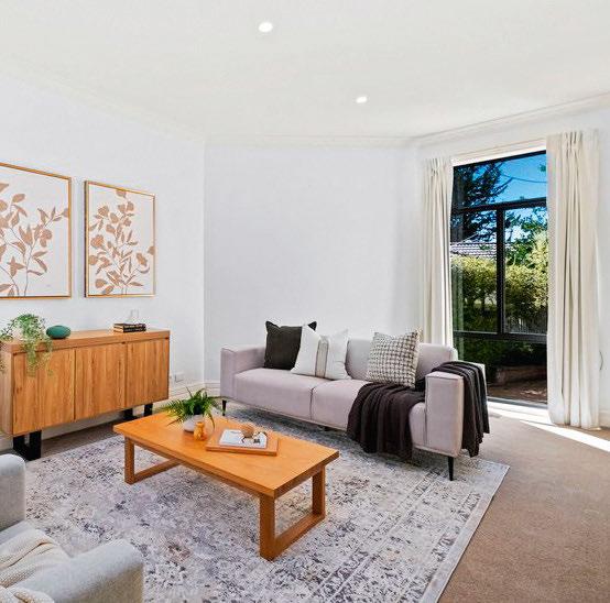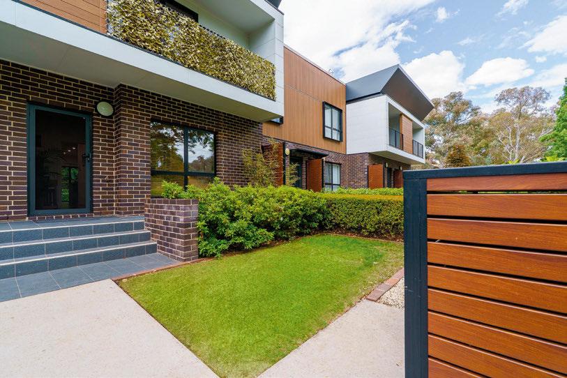 “This was the frst dual occupancy on National Circuit,” she says. “Positioned at the back of the site, you enter the property through a beautiful walkway surrounded by manicured gardens.