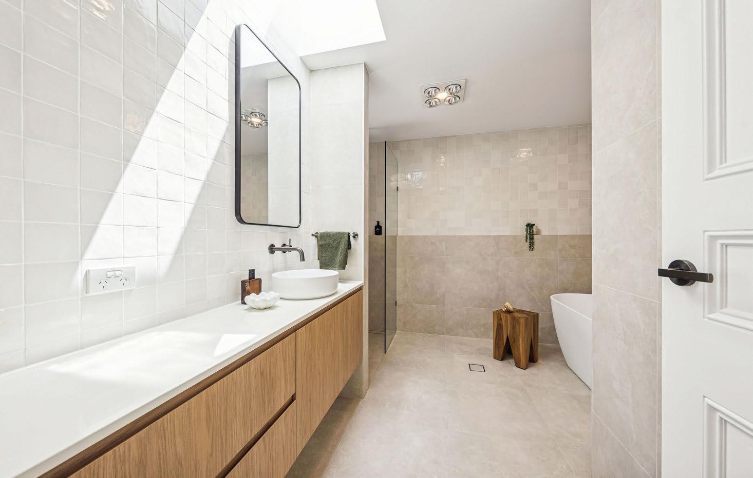 From the outside, it’s clear that this oversized fve-bedroom house in Googong is a new build – it’s only four years old. But walk across the engineered hardwood foors, and you might fnd yourself wondering. There are heritage throwbacks everywhere you look, from the classic AGA-style cooker to the custom-built cabinetry, elegant archways, and art deco bathroom tapware and light fttings. This is a home in an era of its own.