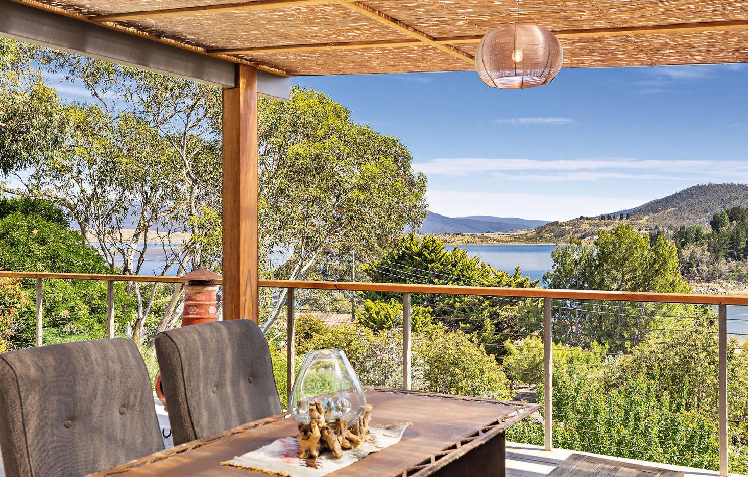 Stone and timber set the tone of this unique four-bedroom home, which features a two-storey layout, a study or music room, and generous storage. The cherry on top is a large, covered entertaining deck that captures sweeping lake views. It’s a short walk from the sands of Rushes Bay, or about a 40-minute drive from the ski resorts.
