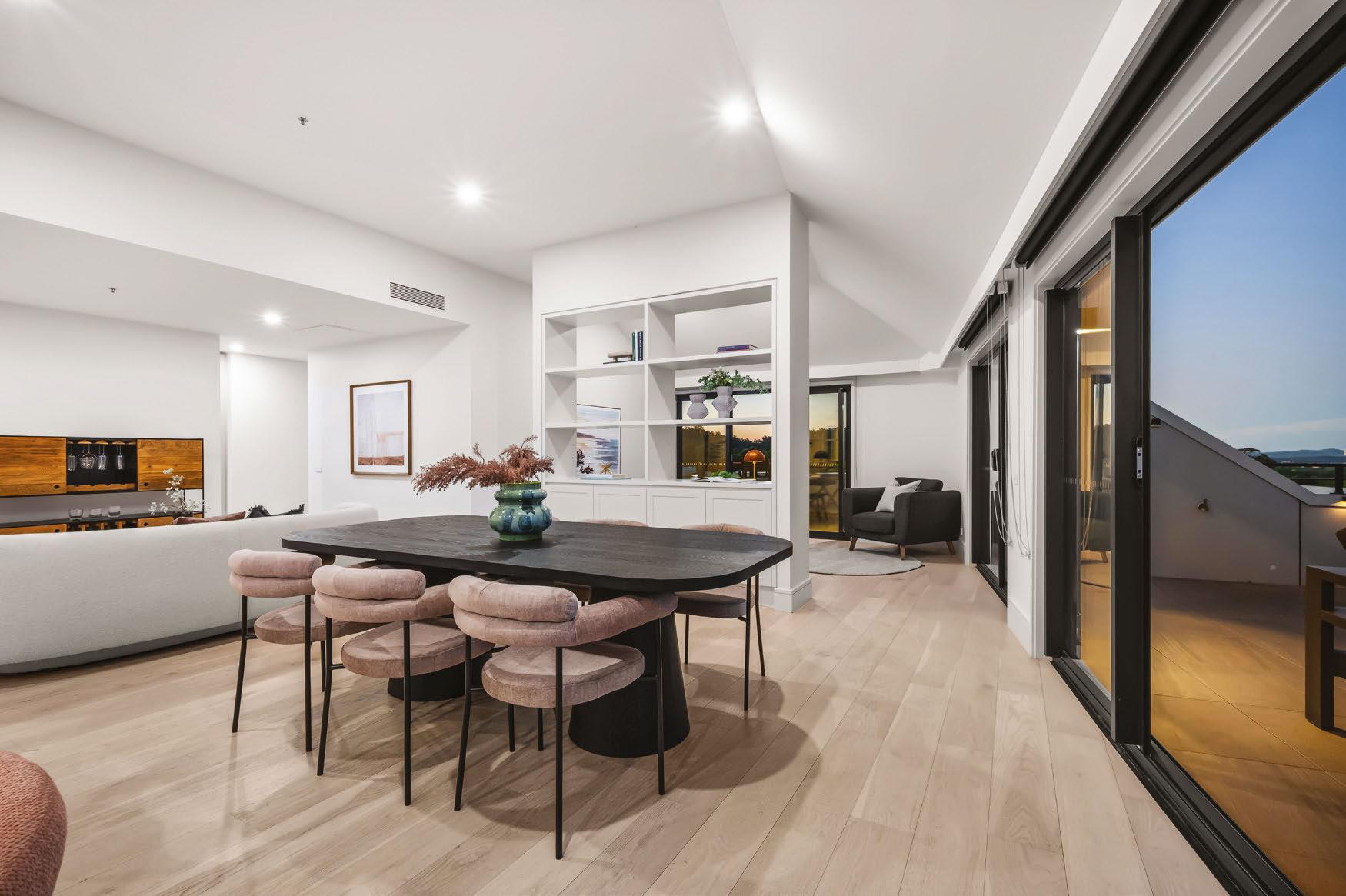 Set across two generous levels, the residence ofers the space and comfort of a free-standing house, paired with the ease of a low-maintenance lifestyle. Its thoughtful design would easily cater to visitors with entertaining amenities such as an outdoor pizza oven and wood-fred cooking hearth.