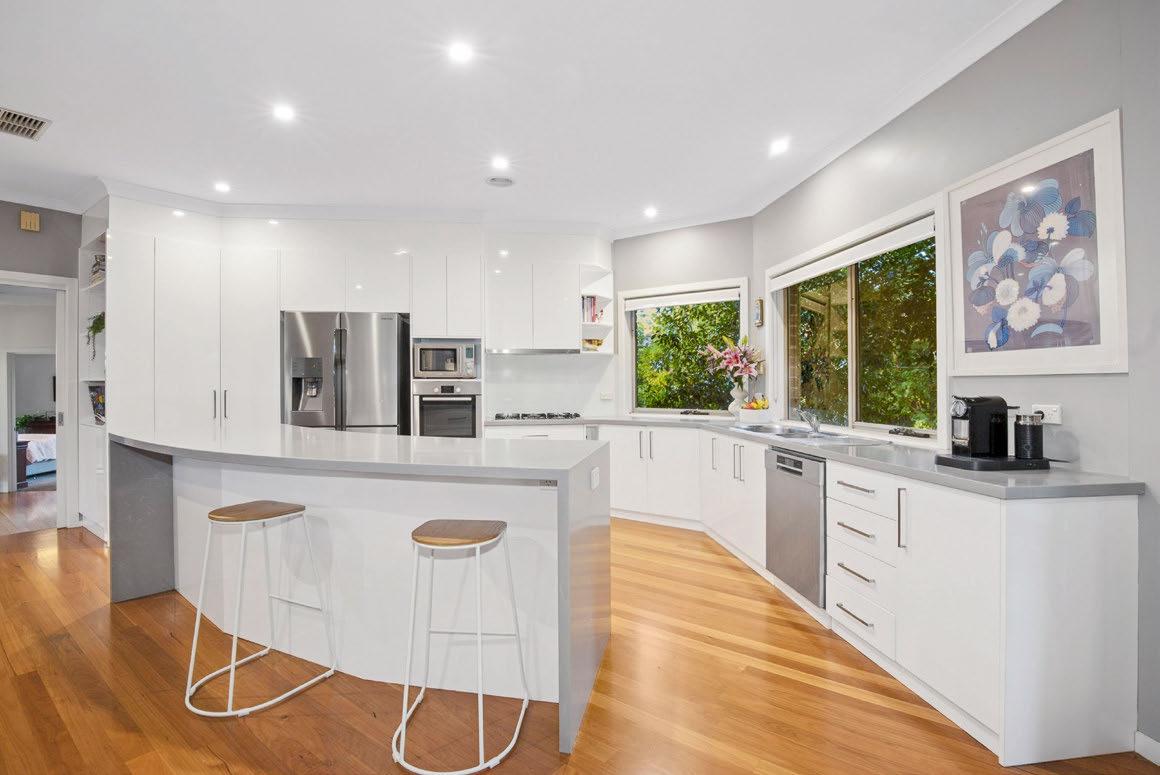 Raked ceilings and clerestory windows capture prized northern light in the entertainer’s kitchen and casual living areas, while sliding doors open to a gazebocovered alfresco entertaining area and manicured gardens. A rare opportunity in a tightly held, premier location. EER 4.5