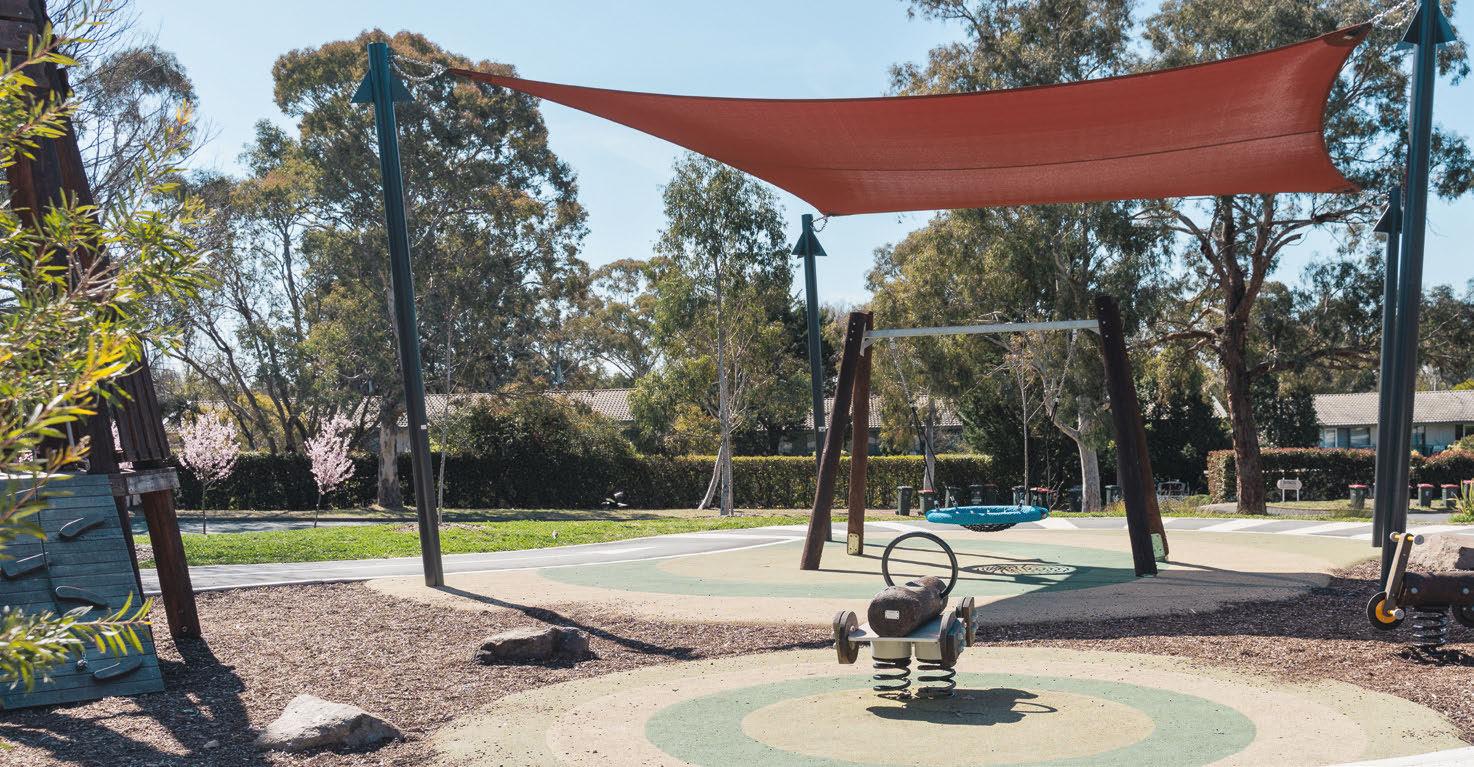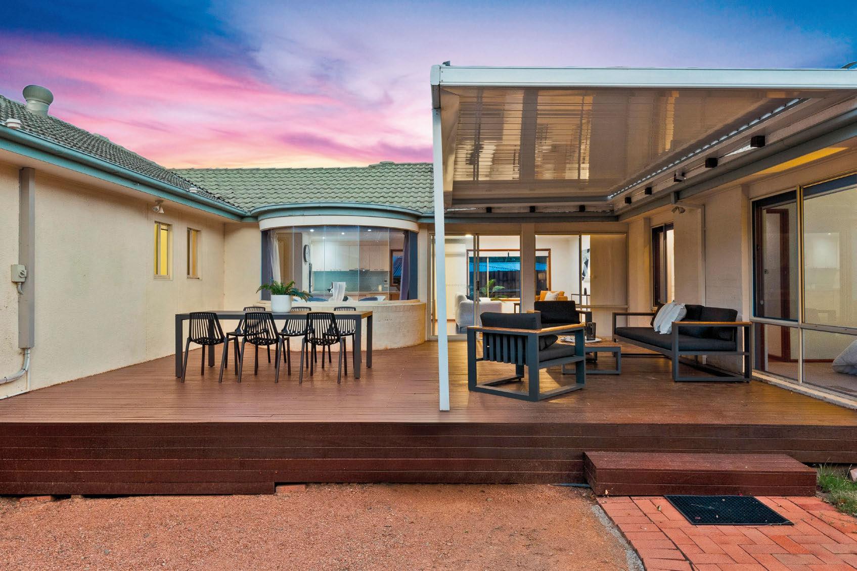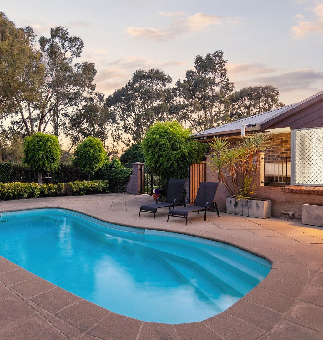 Set on a 1084-square-metre block in lush Kambah, this is more like a private estate than a suburban home. Inside, a thoughtful layout ofers space and seclusion for everyone. When you want the family to come together, the kitchen and living areas lead out to covered decks on both sides. There’s even a pool and a hot tub. If you’re a golf fan, you can be teeing of at the adjoining Murrumbidgee Country Club in less than fve minutes.