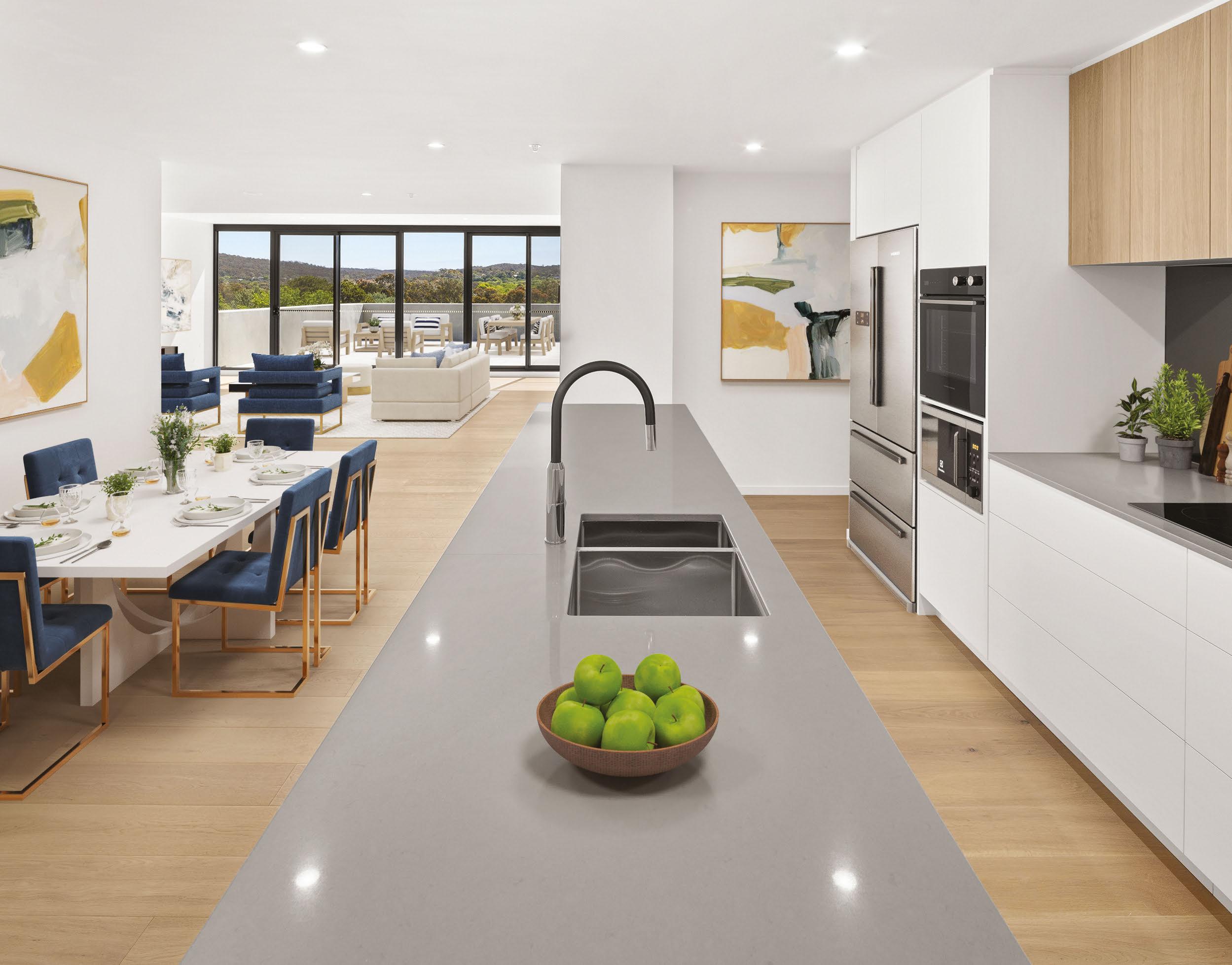 If you’re looking for the best address in Canberra, this might just be it. Sydney Avenue is a mere stone’s throw from the Parliamentary Triangle, between Lake Burley Grifn and The Lodge. Inside, everything is elegant and easy with Miele appliances, marble bathrooms, miles of windows and a signature enclosed “winter garden” balcony. And then there’s the view – a leafy canopy and the city’s most famous rooftops.