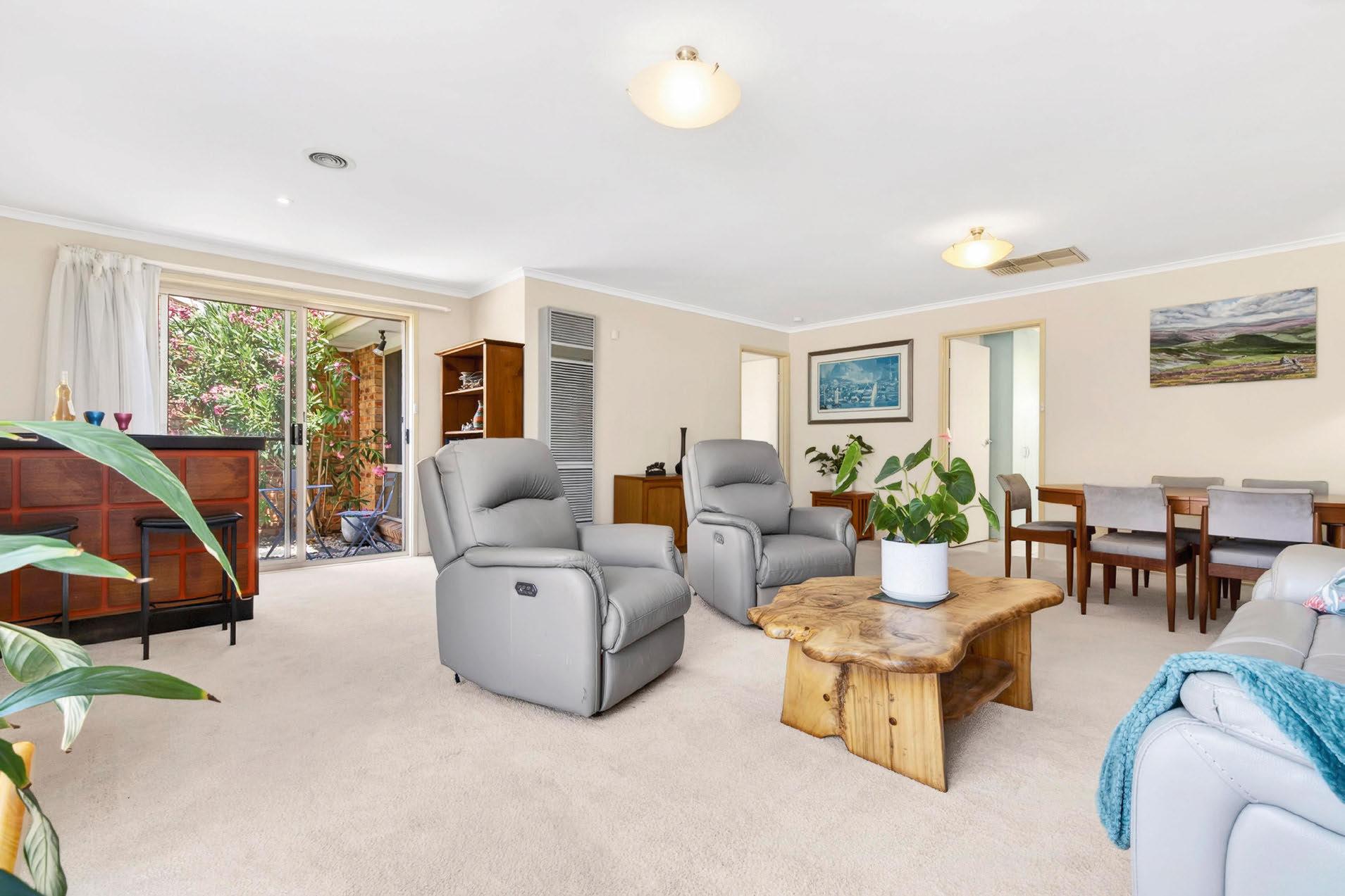 Set within a small, well-maintained complex opposite Ginninderra Creek nature reserve, this beautifully kept single-level townhouse offers an outstanding opportunity for downsizers seeking comfort, privacy and ease of living – all without compromise. Thoughtfully designed with no internal steps, the home provides a practical, flexible layout that separates living and accommodation zones. The main bedroom with an ensuite is privately positioned alongside the main lounge, creating a peaceful retreat ideal for everyday living or hosting guests. At the opposite end of the home, two additional bedrooms sit alongside the central living, dining and kitchen area, flowing seamlessly to a charming, low-maintenance courtyard – a perfect spot for morning coffee or quiet afternoons in the sun. The home has been lovingly maintained and presents a wonderful blank canvas for those wishing to update or simply enjoy the comfort and quality as it is. Spacious living areas and a double garage further enhance everyday practicality. Located in sought-after Melba, close to shops, green spaces and schools, this home delivers a rare combination of single-level convenience and downsizer-friendly design. A superb opportunity to secure easy, low-maintenance living in a tightly held pocket.