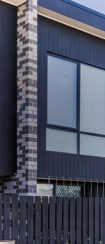 Features that set this northside family home apart include the dark panel-style garage door and a matt-black feature wall that pops in the main-bedroom suite. The exterior’s two-toned theme extends indoors, where the impressive central kitchen is made for entertaining, thanks to a large breakfast bar, walkin pantry and top-line appliances. The bathrooms shine with floor-to-ceiling marble-look tiles and floating vanities. One has a free-standing bath.