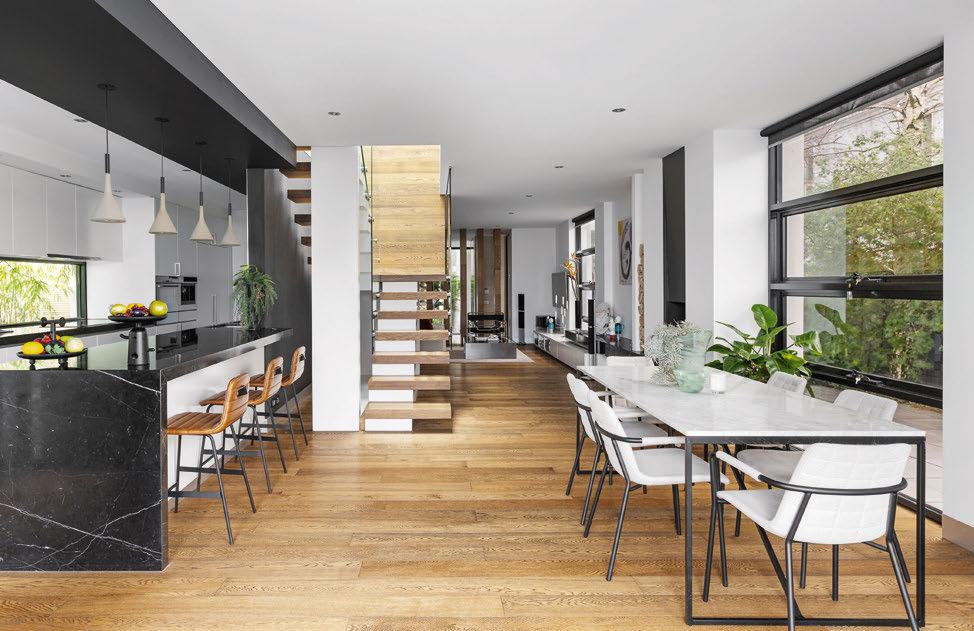 This modern home melds cutting-edge design with flow and comfort. From the wide, welcoming entrance to the warm use of stone and timber finishes, it is a beautiful residence. The four bedrooms upstairs each have a wellappointed en suite. Joining the two floors is a lift, making the home very versatile.