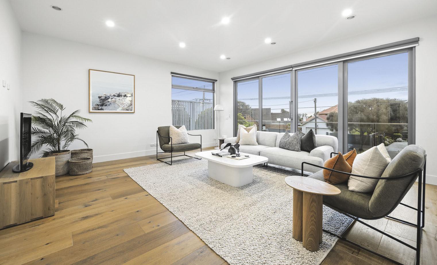 This new two-storey townhouse offers space and light and is close to trams, schools, Dendy Park and Brighton Public Golf Course. It boasts a home office and two bedrooms with generous en suites. The modern kitchen comes complete with a built-in wine fridge.
