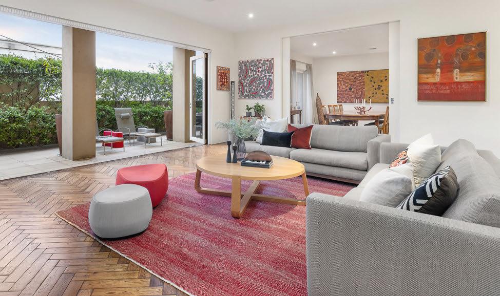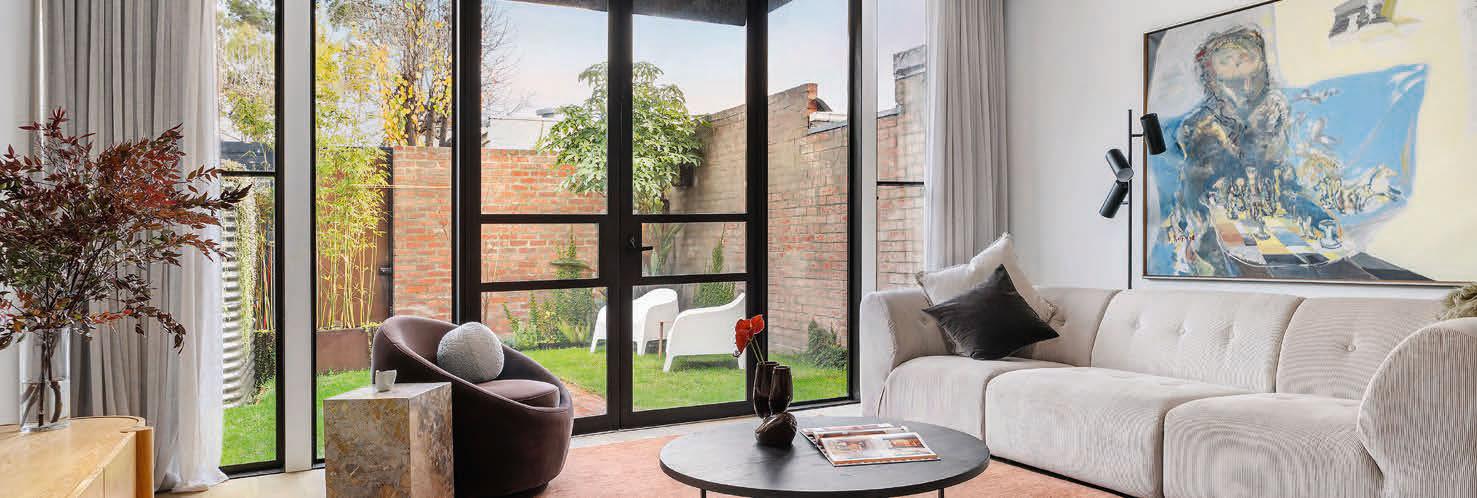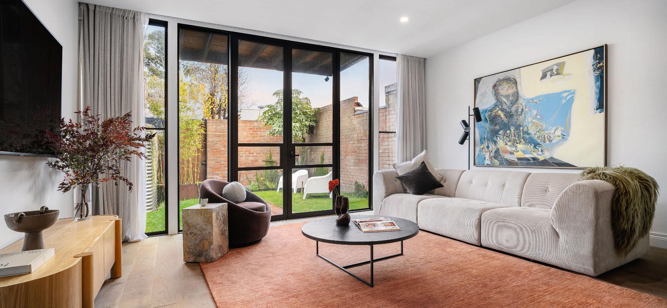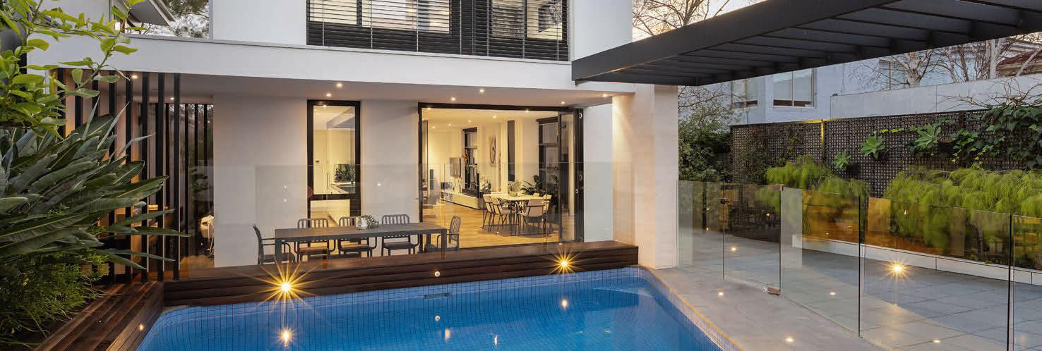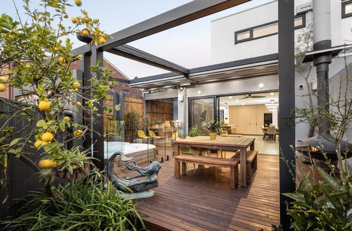 This high-tech haven, which went up only two years ago, was designed by architect Thomas Archer, with interiors by awardwinner Jasmine McClelland. The two-level townhouse boasts impressive inclusions, such as an outdoor massaging spa, a dualpurpose fireplace-pizza oven and polished concrete floors with in-slab hydronic heating.