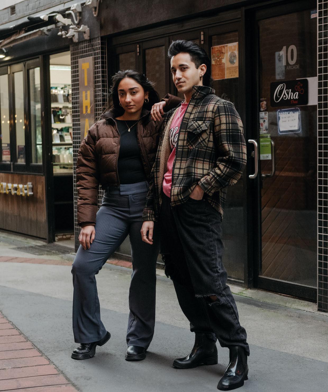 Names: Nav Wali and Sandali Girish Age: both 19 Occupation: Students Tell us about your outfits today. NW: I have a gumboots kind of vibe going on – it was a bit rainy. These ripped jeans and my jacket I got from Camberwell Market. I wake up early every Sunday to hit the market. SG: I’ve got these striped flared pants on with a cropped puffer from Champion. And I got these boots back in India from a flea market that my aunt and I have a tradition of visiting every time I’m back home.
