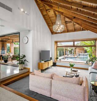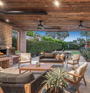 laundry, separate toilet and then two bedrooms, a study nook and a bathroom in a contained wing. Glass doors in the living area part to the travertine terrace, where a solid canopy set with skylights and a fan encourages all-weather usage. Extras include a barbecue, oak floors, plantation shutters and solar panels. ●