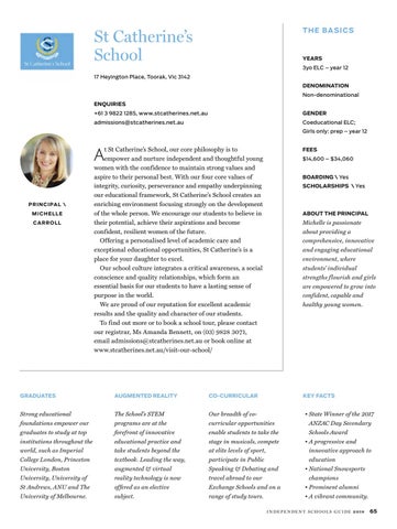 17 Heyington Place, Toorak, Vic 3142 DENOMINATION Non-denominational ENQUIRIES +61 3 9822 1285, www.stcatherines.net.au