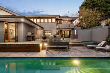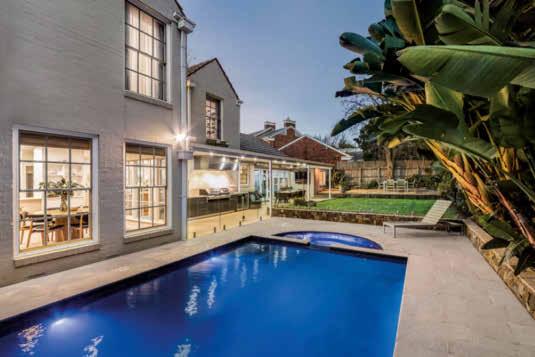 laundry. Take a few steps down to the living area, and you’ll find glass doors opening to a pergola and a secluded north-facing garden with a swimming pool, below-ground wine cellar, storeroom and a self-contained guesthouse ideal for extra family members. ● IAIN