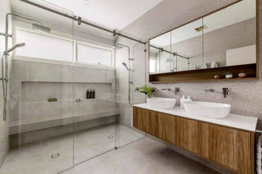 laundry and bifolding doors that lead to a sheltered patio. Upstairs, a central family retreat sits adjacent to two bedrooms and a large bathroom. The house offers a choice of an upstairs or downstairs main bedroom, both of which are complete with walk-in wardrobes and en suites. ●