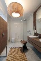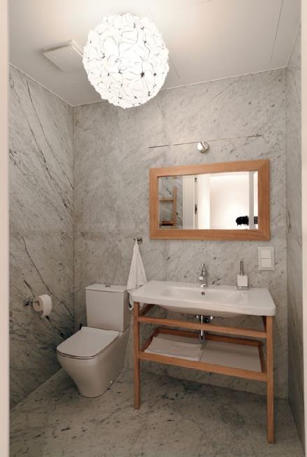 A flat near the seaside which the owner only uses during the summer. The interior is bright, incon spicuous and well lit, with high-quality furniture and considered functionality. Valuable materials havebeen used ina simple way and with successful combinations. Wood panelling and matted natural stone contrast with handmade carpeting and linen textiles. Particular attention has been focused on lighting elements.
