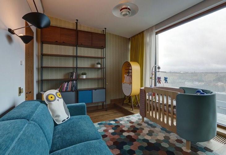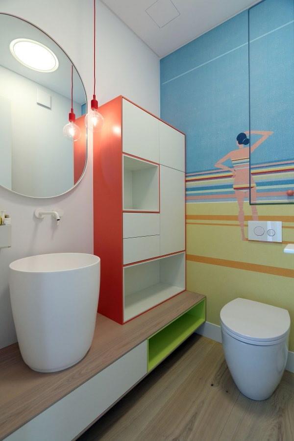 This is an apartment for a young modern family. They asked for cheerful and colourful apartment. Family memberswerefond ofbold colours,so we decided to fulfill their dreams.t Beg attention was to a detail,joints, colour combination,ergonomics and function. A lot of furniture items are bespoke,everything is made so everything is in place,a lot of space to hided and discrete personal items and show things you wont - like books, albums, toys, service station.