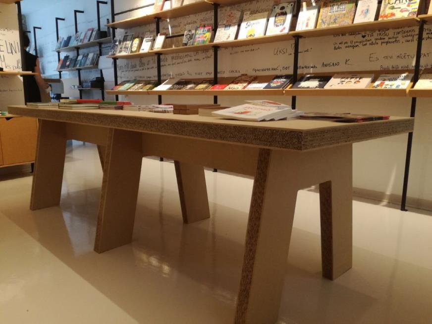 Mr Page. is a special bookstore with outstanding and rear books. This is made to be a place to have a seat on the window, take a book with white gloved giveninthestore,coffeeandenjoythebook.Tables ar made of cardboard, display shelves of MDF and metal,wallsarecovered withdifferent sayngs from books, chandelier from birds made from book pages. Everything in the store had to hint on what this store is selling.Really magical place!