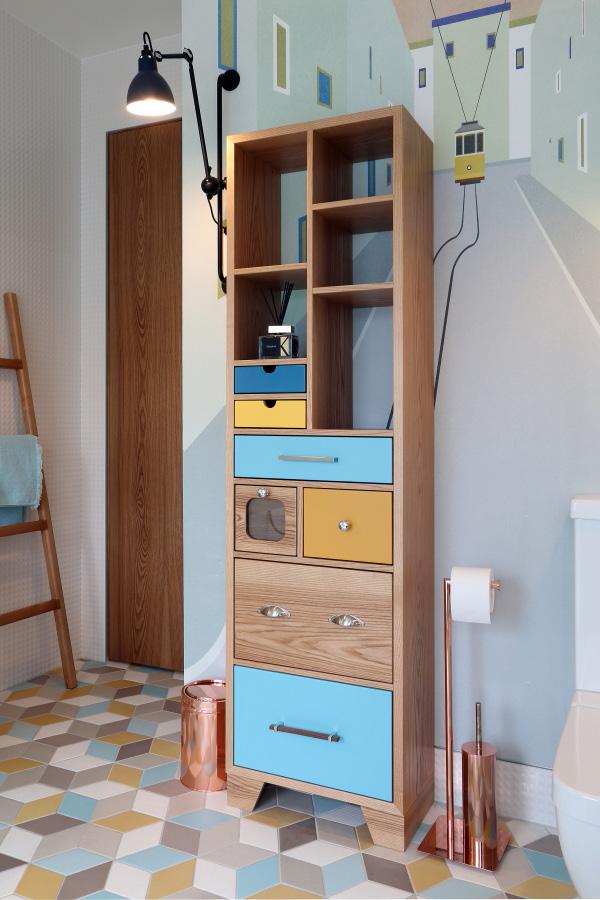 Family members were fond of bold colours,so we decided to fulfill their dreams.t Beg attention was to a detail,joints, colour combination,ergonomics and function. A lot of furniture items are bespoke,everything is made so everything is in place,a lot of space to hided and discrete personal items and show things you wont - like books, albums, toys, service station.