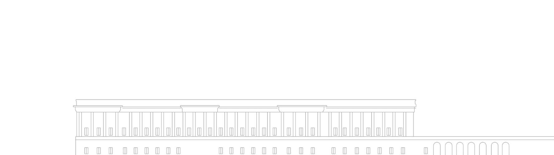 Eledificiosepresentaaalalzadodelaciudadconunasfranjashorizontalesquese contraponenconelmuseodelascoleccionesrealesyentraendiálogoconla horizontalidadmarcadaporlasviviendasdeCanoLasso