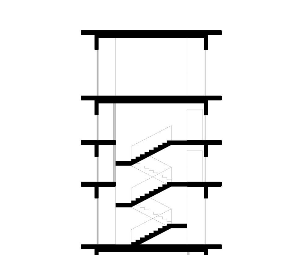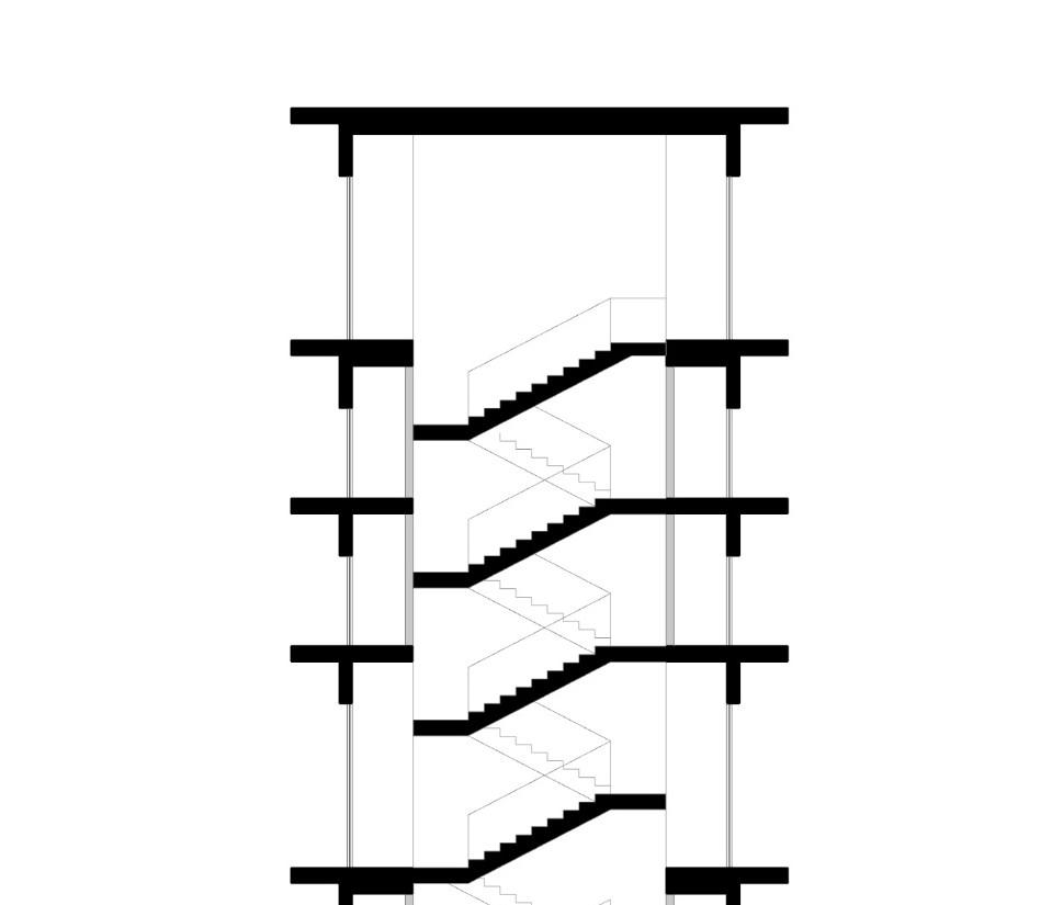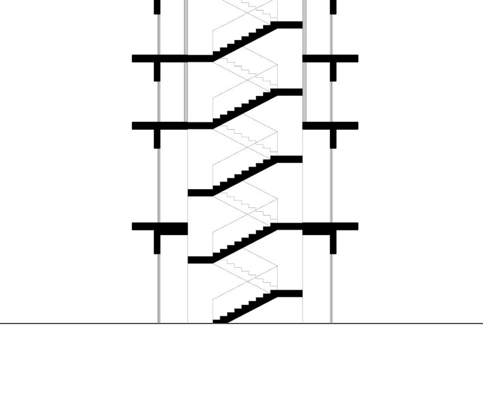 Laideaesgenerarunsistemadecomunicacionesverticales.Subdividiéndolasendos grupos:principalesypúblicas,frenteasecundariasyprivadas.Atravésdelasverticales tienelugarelaccesoatodaslasplantascomunes,dondeseencuentranzonasdeestar, restaurantes,cocinas,comedores,gimnasioysalasdeusolibre.Desdeestasplantas comunesseaccedealasviviendasindividualesatravésdelosnúcleossecundariosde escaleras.