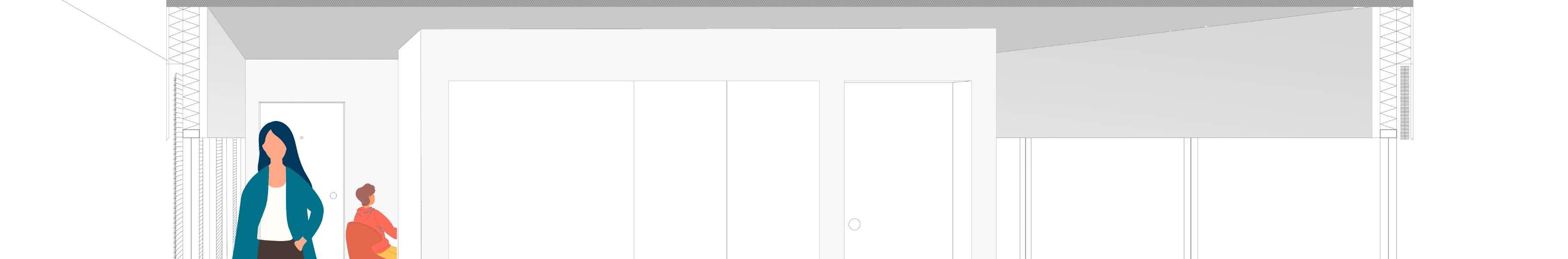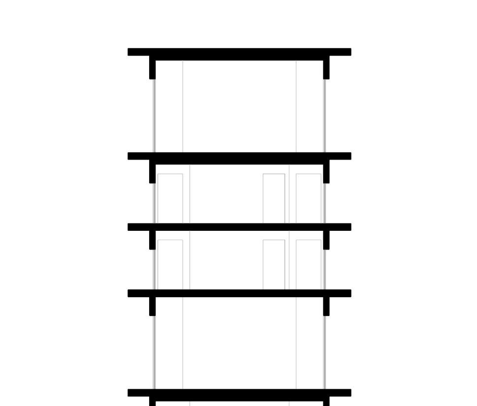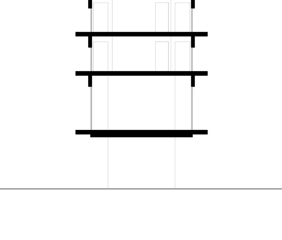 Yaquesehaoptadoporremarcarlahorizontalidaddeledificio,sehandispuestodos elementoshorizontaleslongitudinalesquejuntoconlasdistintasalturasdeplantadarán dinamismoalafachada,estosson:unvoladizo,comoelementodeprotecciónsolarfrenteal soldelmediodía;yunpañoqueescondeunavenecianaexteriorquesirvedeprotección solarenlafachadaoesteyquellegaalaalturadelamiradaparadirigirlamiradadel habitantehaciaabajocuandoestádepie,yatenerunavistapanorámicacuandoestá sentado.Deestemodo,tratándosedeunespaciotancomprimido,puesasílorequeríael programa,seinvitaasushabitantesaestarsentados.