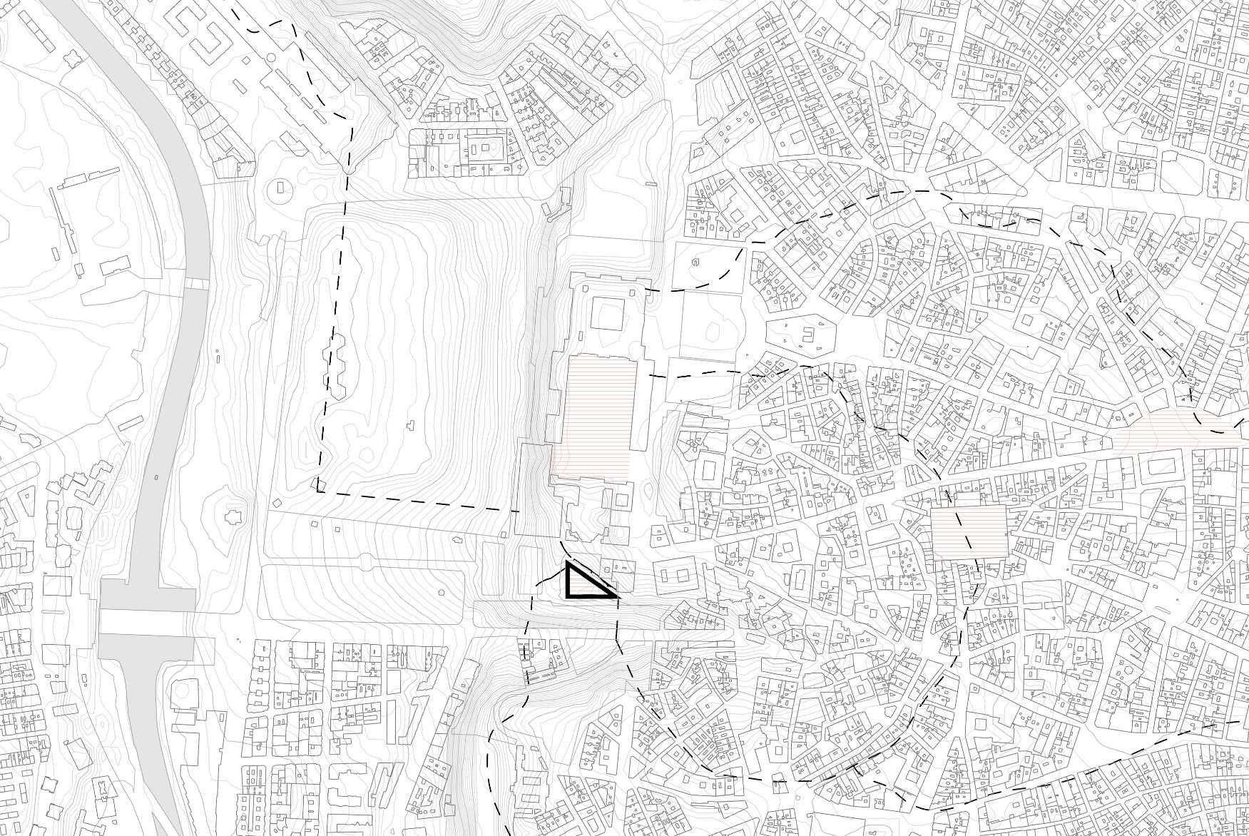 Lapendientesurcobraderepenteunanuevaimportanciaenelproyecto,conloquetrata derecuperarselapendientepreexistentegenerandounespaciopúblicotopográfico convexo.
