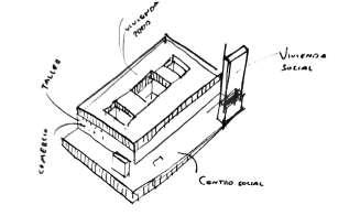 Se parte de un estudio de las trazas de la Tabacalera para representar el nuevo edificio adosado. Y entablar desde el principio un diálogo por proximidad.