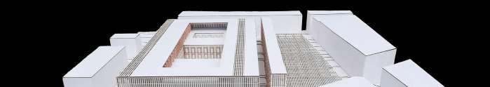 Contraposición de la horizontalidad de la tabacalera con la verticalidad de la pastilla de viviendas que potencia el espacio de la plaza.