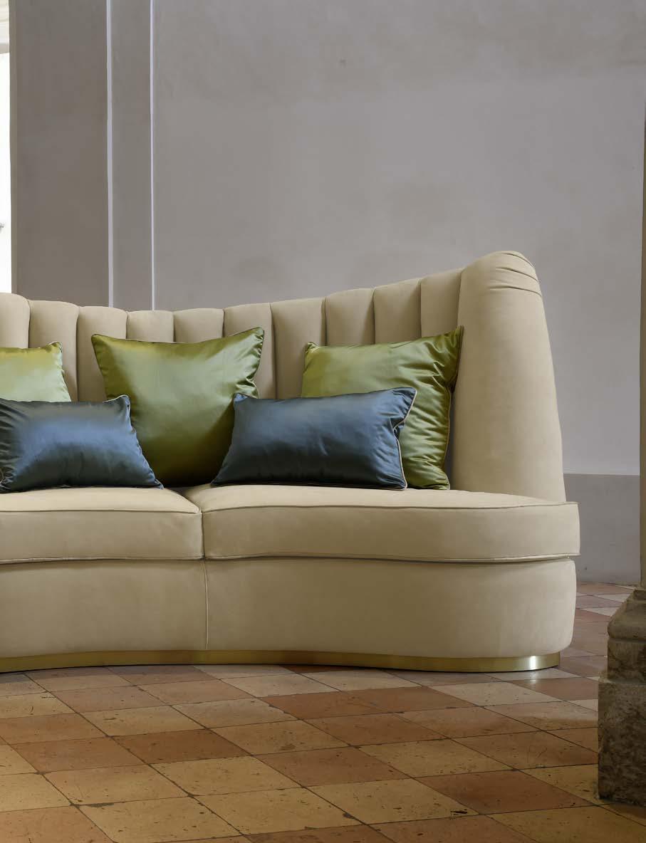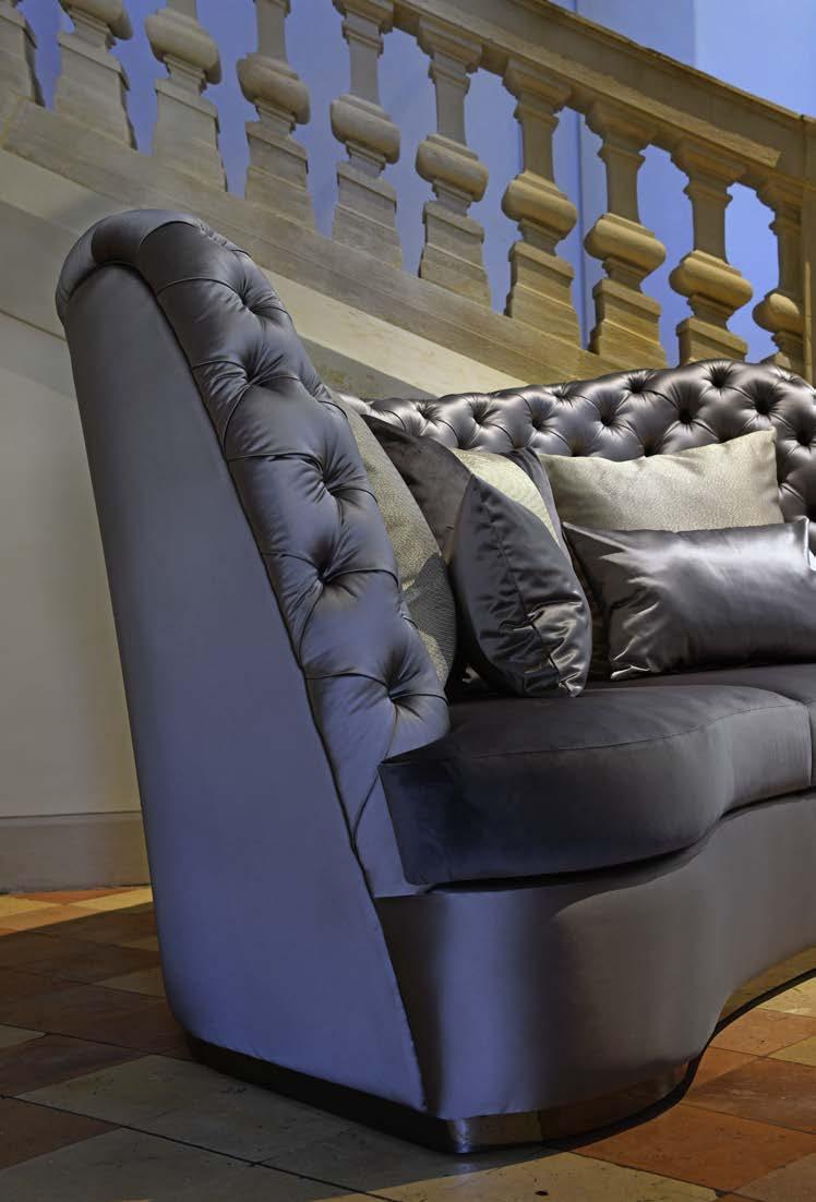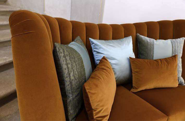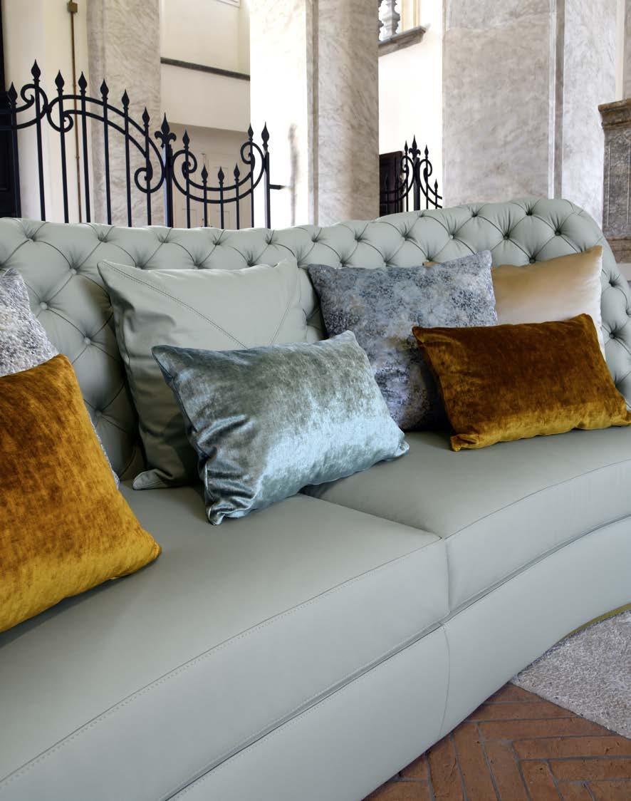 La versione luxury include cuscini monocromatici rivestiti con il medesimo tessuto/pelle del divano.