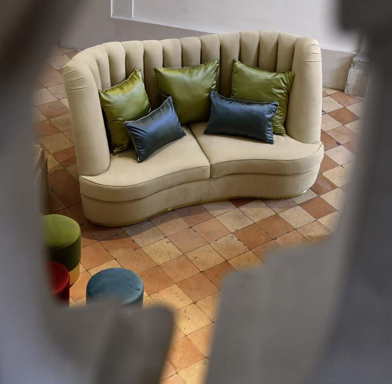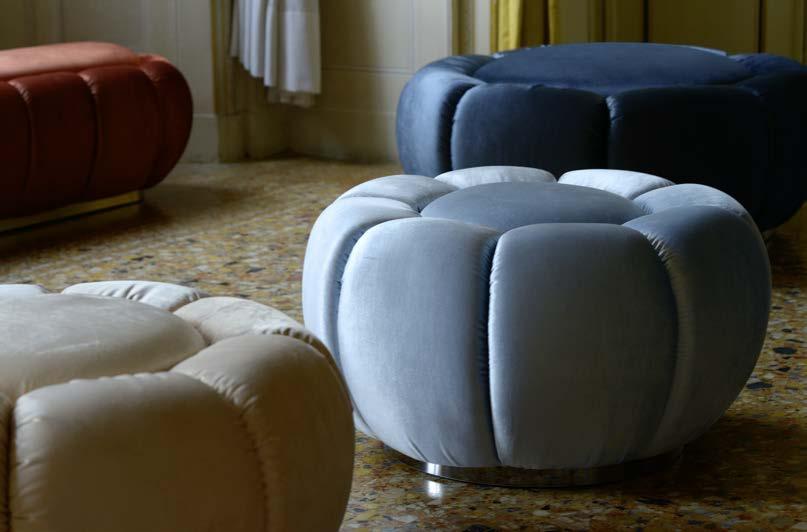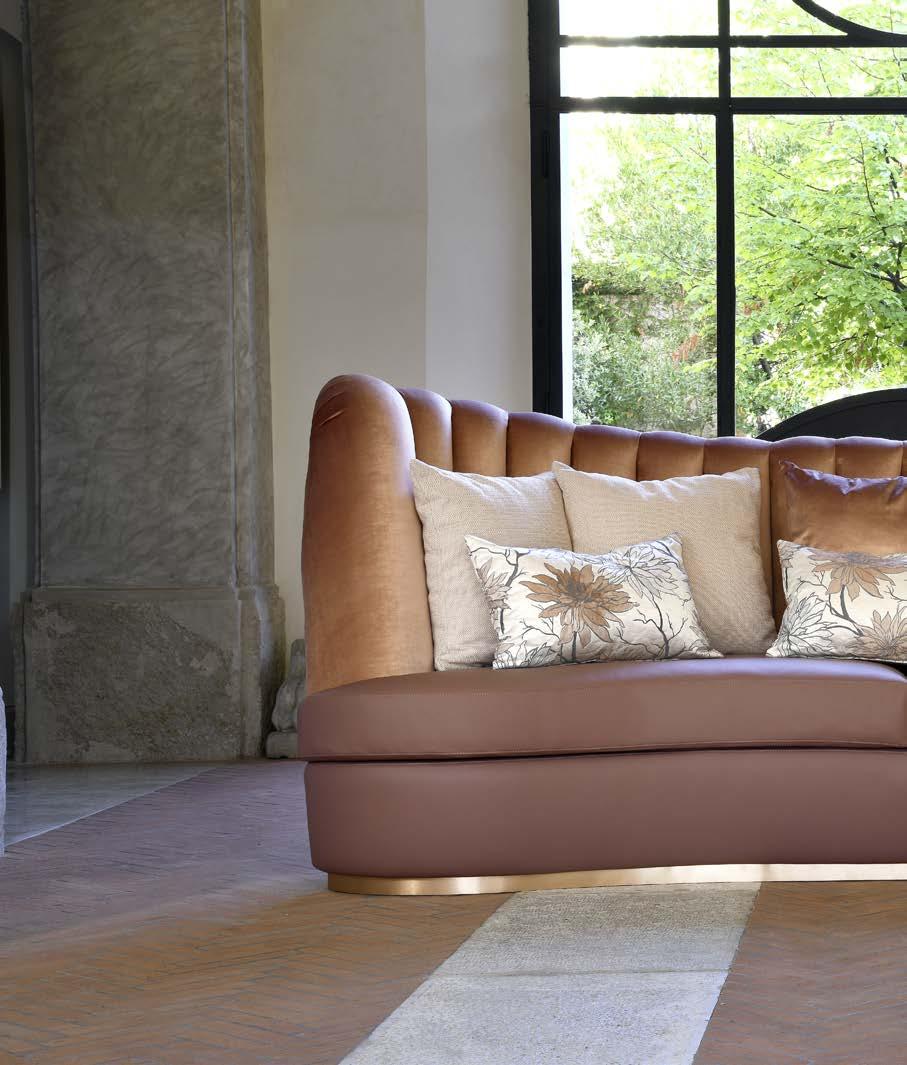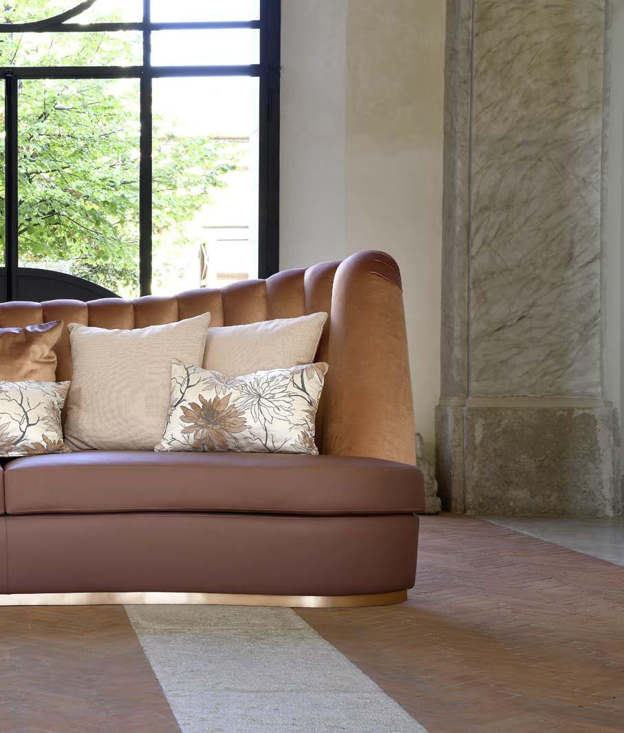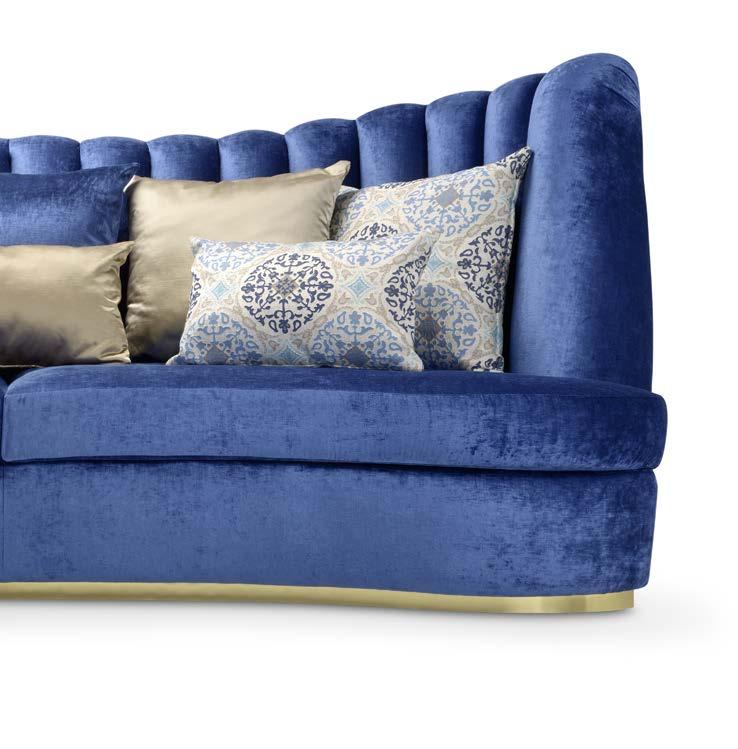 La versione luxury include cuscini monocromatici rivestiti con il medesimo tessuto/pelle del divano.