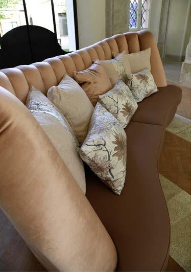 La versione decor include cuscini decorativi in diversi colori come foto pag. 42-45. La versione luxury include cuscini monocromatici rivestiti con il medesimo tessuto/pelle del divano.