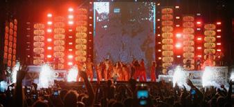 La quinta noche comenzó con el tremendo show de Christina Aguilera. La norteamericana desató todo su talento en la Quinta Vergara y ha sido lo más comentado hasta el momento. En escena la cantante lucío su potente voz, acompañada de cuerpo de baile que ocupa variados accesorios para acompañar, como barras de luces y reflectantes. Aguilera hizo cantar al público sus clásicos y sus temas en español, como Pero me acuerdo de ti y