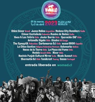 Womad Chile tendrá lugar del 31 de marzo al 2 de abril, y en su line up cuenta con artistas internacionales como Juana Molina, Chico Cesar, Modena City Ramblers, Senza, La Chiva Gantiva, y los nacionales Javier Barría, Operación CAF, La Plaza del Puma, Nicole Bunout, entre otros.