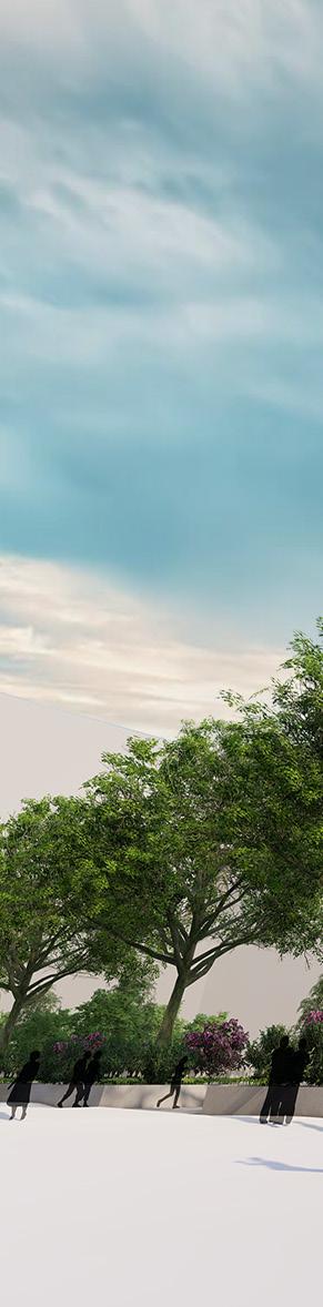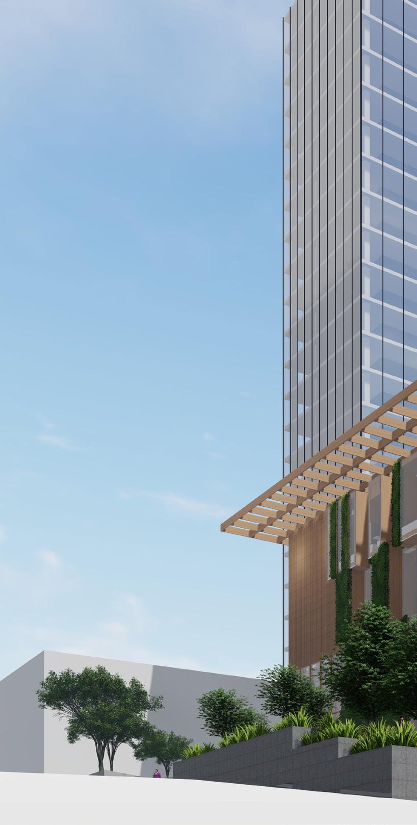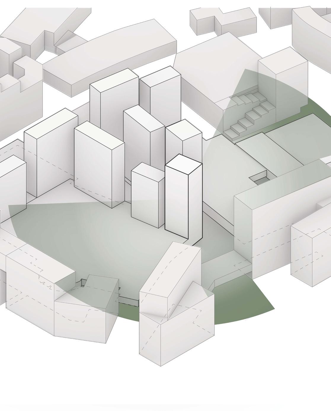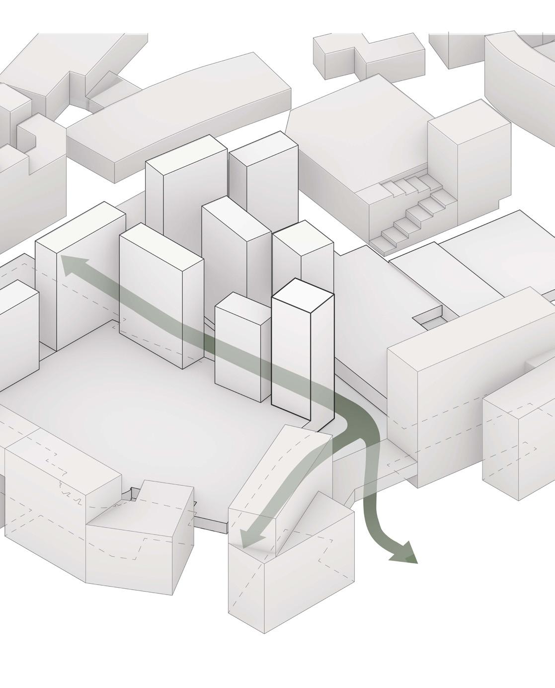 While the site is for both employees and the public, the office building will act primarily as a collaborative space that restores employees desire to work in person. Sustainable design, materiality, and flexible workspaces maximize positive experiences for employees. Through implementation of green facades, a secondary solar shading structure, optimal building orientation, and improved thermal massing materials our design creates a comfortable environment in a sustainable building. The design focuses around the grand stairs that create diverse spaces that allow the employees to connect and flow between each floor’s program. The stairs end at the social program that explore the office as more than just a place for work.