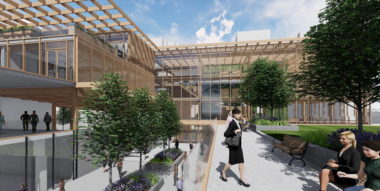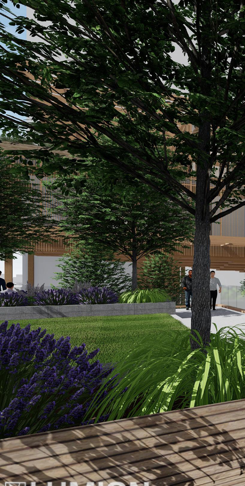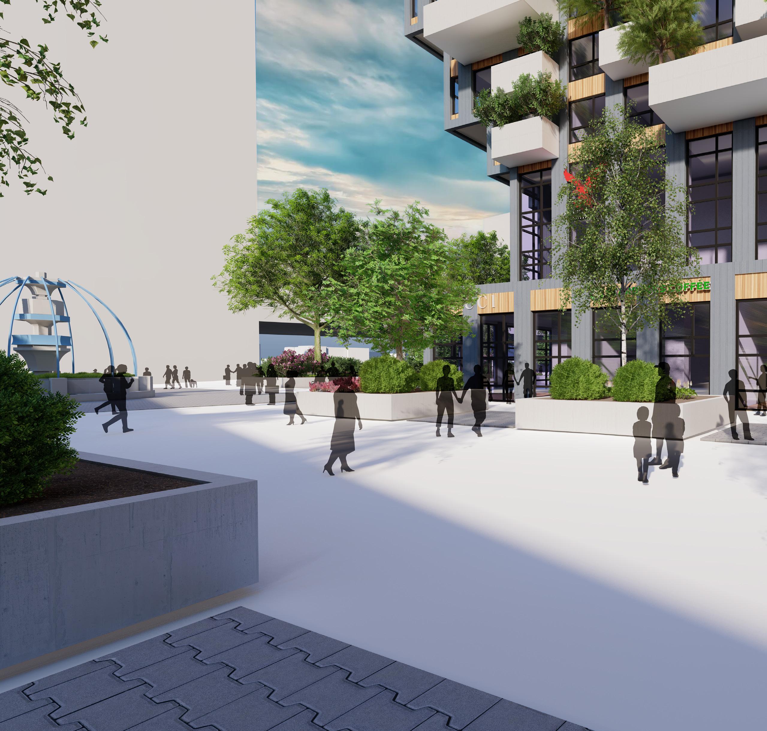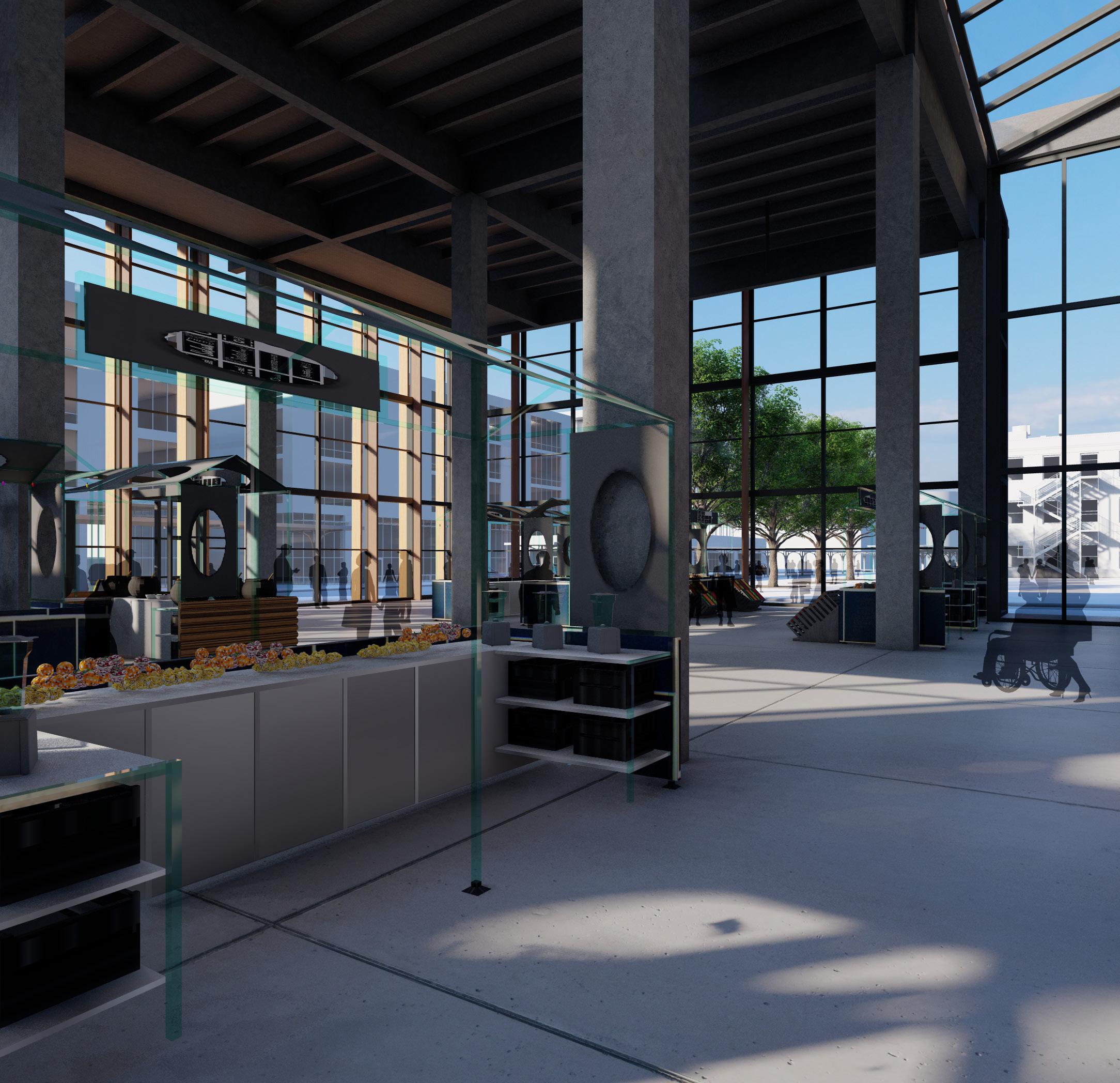 The site is planned to be mixed use in order to increase the diversity of users, activities, and increase the traffic. It site offers outdoor amenities for both employees and the public, and encourages community interaction through community incubation spaces, a market hall/event space, art galleries, and plenty of restaurants to continue the appeal of the plaza to its western edge.