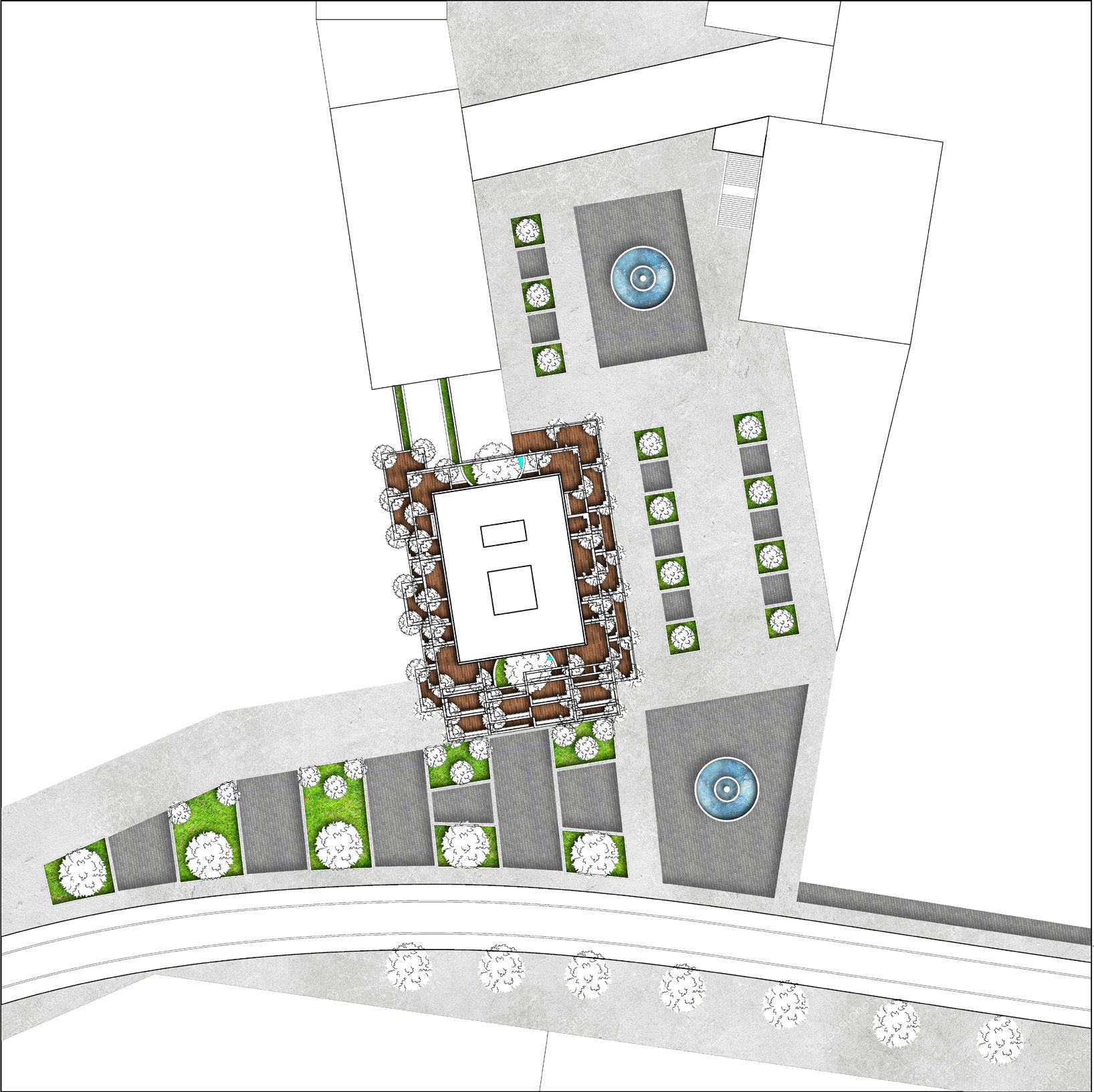 The design is contingent on its connection to pedestrian traffic and access to the Country Club Plaza. In order to maximize its location the design emphasizes entry points and circulation by cutting space through buildings and being integrated into flexible indoor/outdoor space.