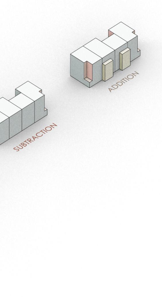 NUhouse’s form comes from three simple moves that drive the interior and exterior arrangements. Through a series of division, subtraction, and addition we created a row house that fits within the context and zoning.