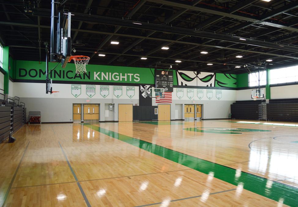 The William Crowley Gymnasium is located on the second floor above the cafeteria. The gym has been dedicated to long-time Dominican icon Bill Crowley. The gym houses all home basketball and volleyball games as well as athletic-based gatherings.