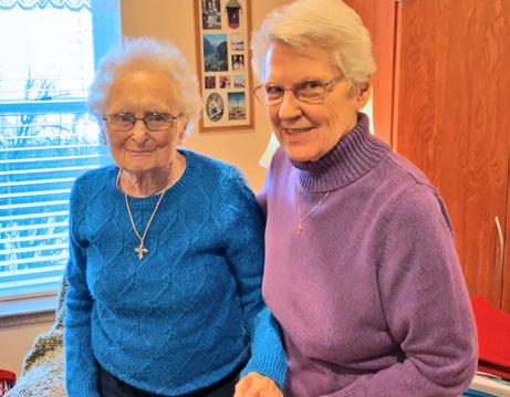 Sr. Mary hosting the class of 1947 in South Haven (above) and enjoying coffee at sunrise with Sr. Marie Kathleen McCrackin† (below).
