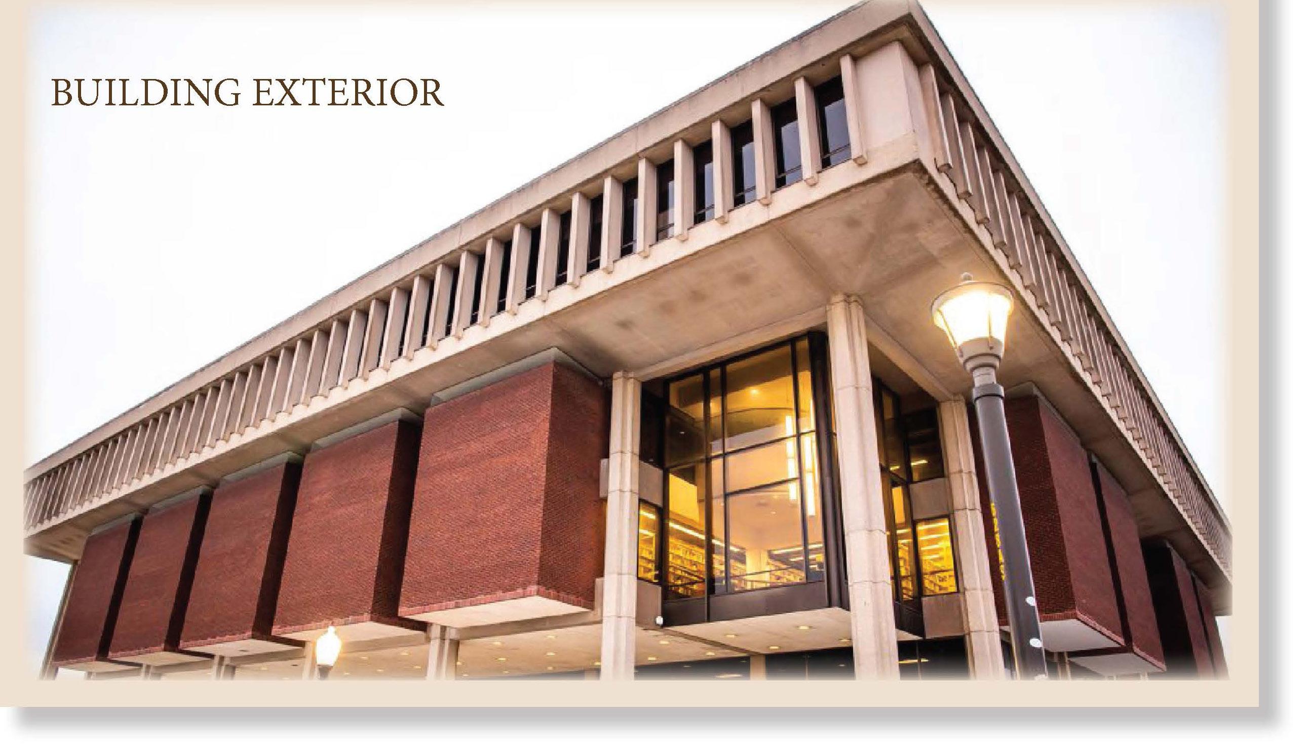 The entryway is a multi-use area which includes the reference desk, an interactive campus map, and donor sculpture. A update to the signage for the library was also included to help students and visitors navigate the building.