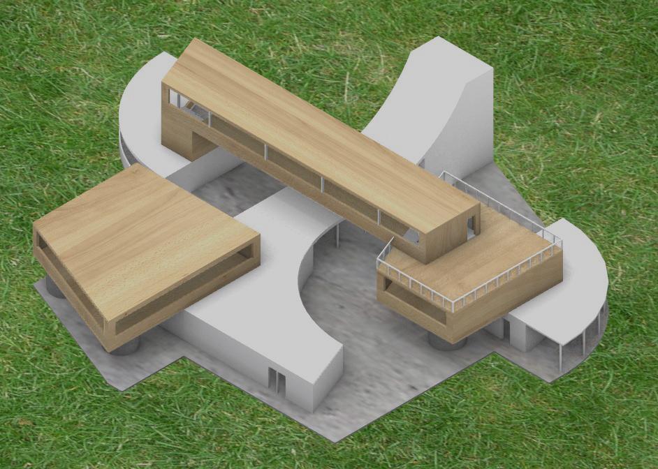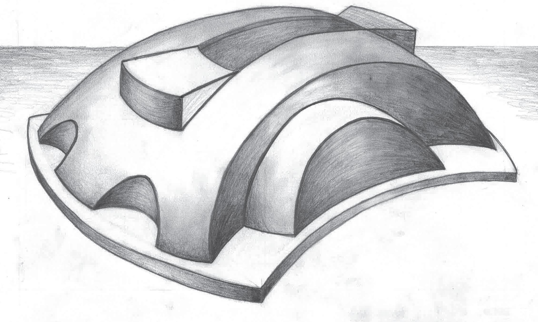 The final exterior form successfully represents the essence of the two curved objects through careful examination of their surfaces. Adhering to themes of biomimicry and integration, this form was refined into a habitable building.