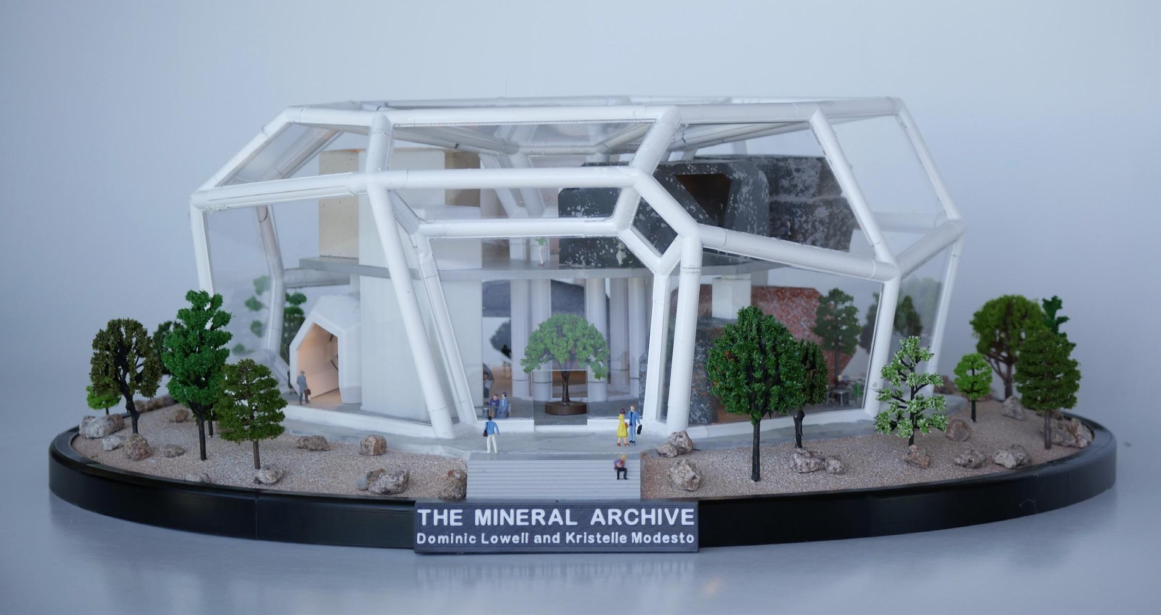 The floor plan of the archival room is inspired by the molecular structure of each mineral.
