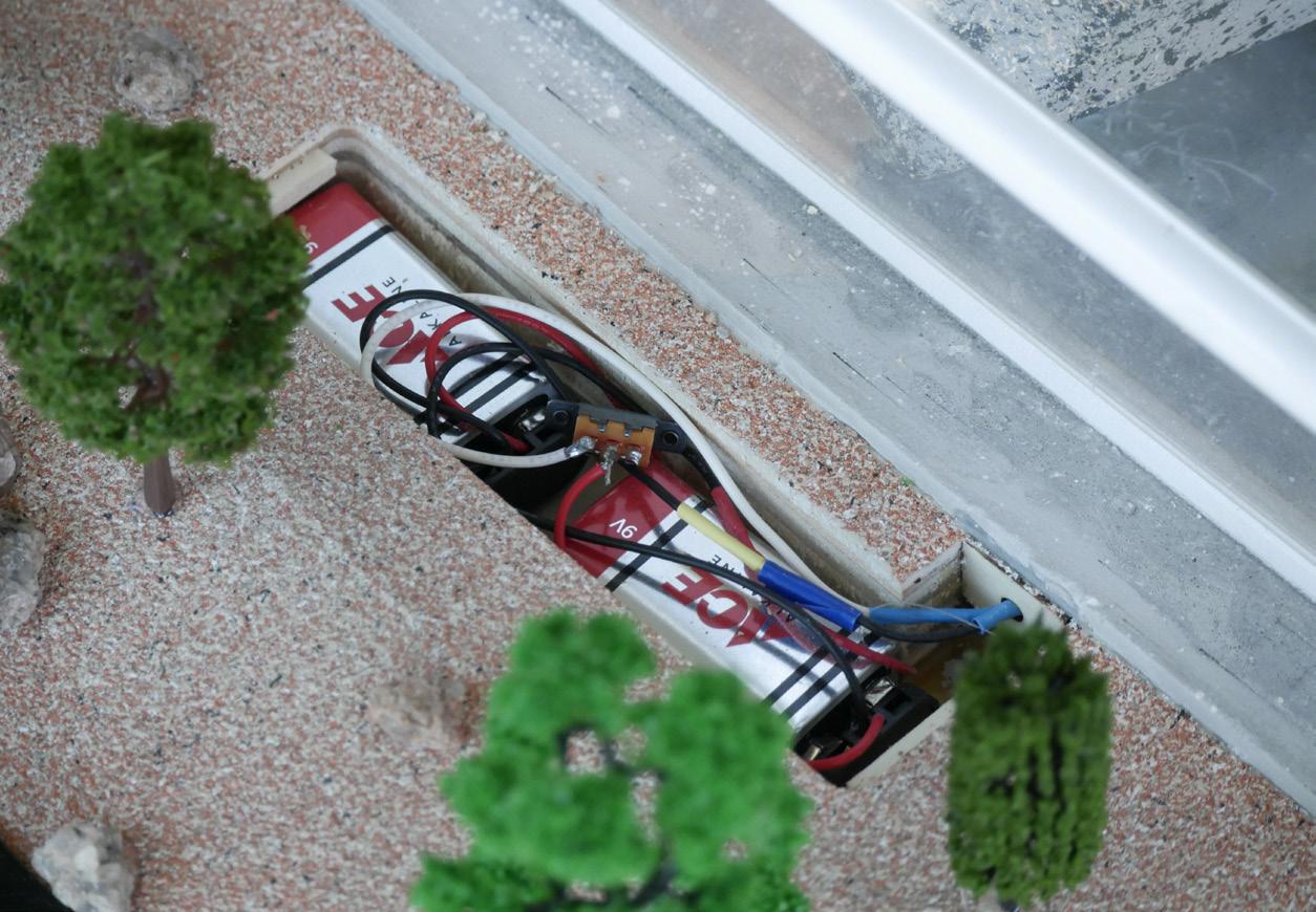 Each interior room features lighting, powered via wires in the concrete foundation.