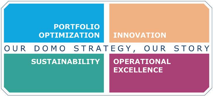 At DOMO, we take a holistic approach to building a high-performing company and have defined clear objectives to create value for all our stakeholders. We want to become a benchmark for engineered materials among the global top tier of our industry. Our purpose, vision and mission are supported by focused objectives and financial targets, driven by our four-pillar strategy:
