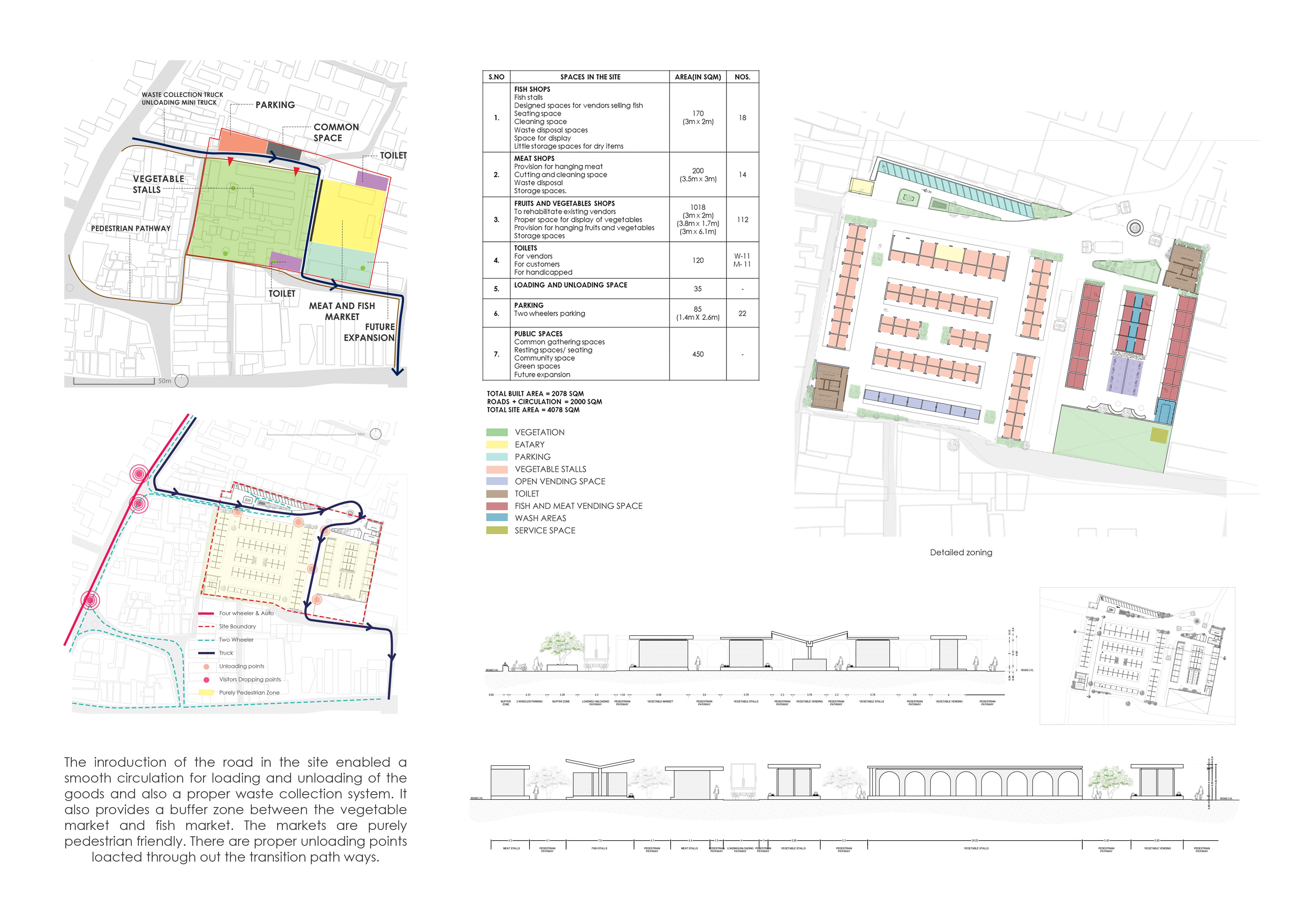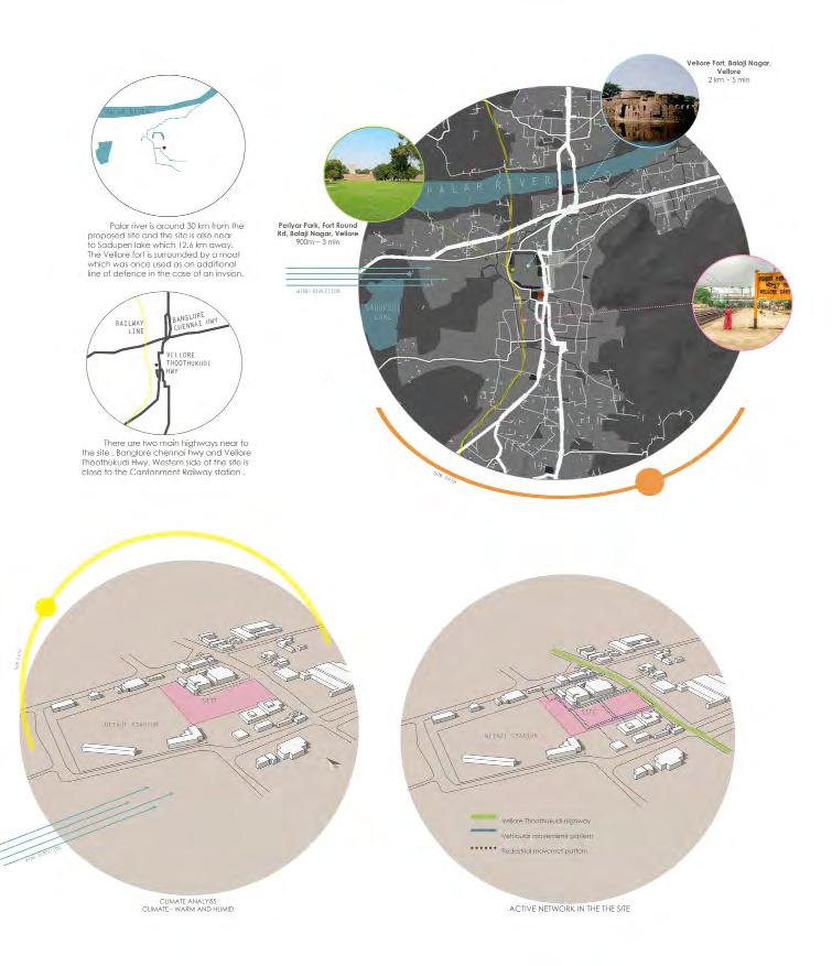 In today’s urban landscape, rethinking the role of markets as integral components of urban transformation is imperative. They serve as new types of social areas that uphold urban traditions, facilitate economic and social exchanges between communities, and address sustainability challenges. Therefore, establishing a market in Vellore is essential for its urban revitalization and transformation.