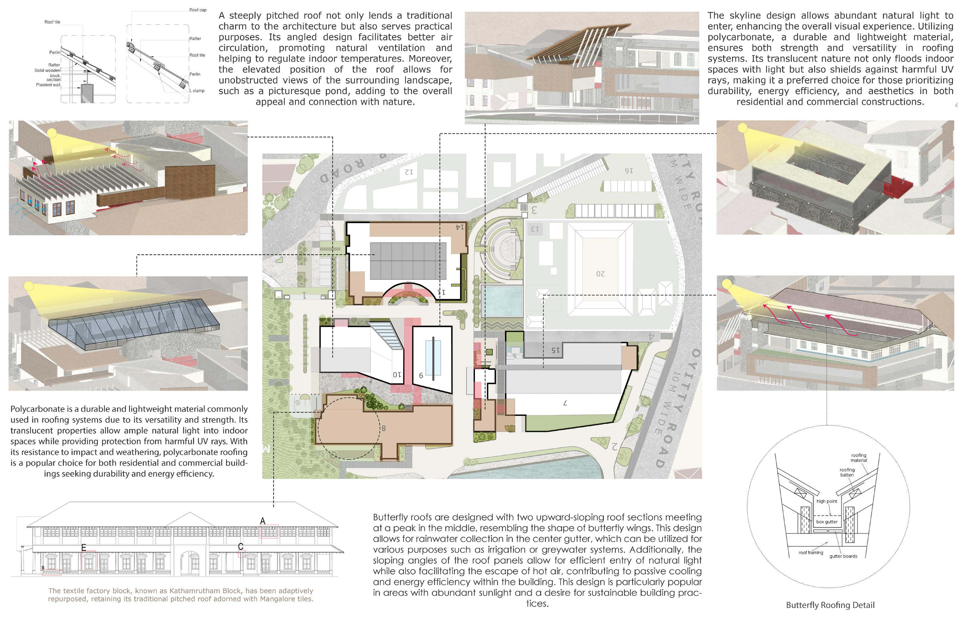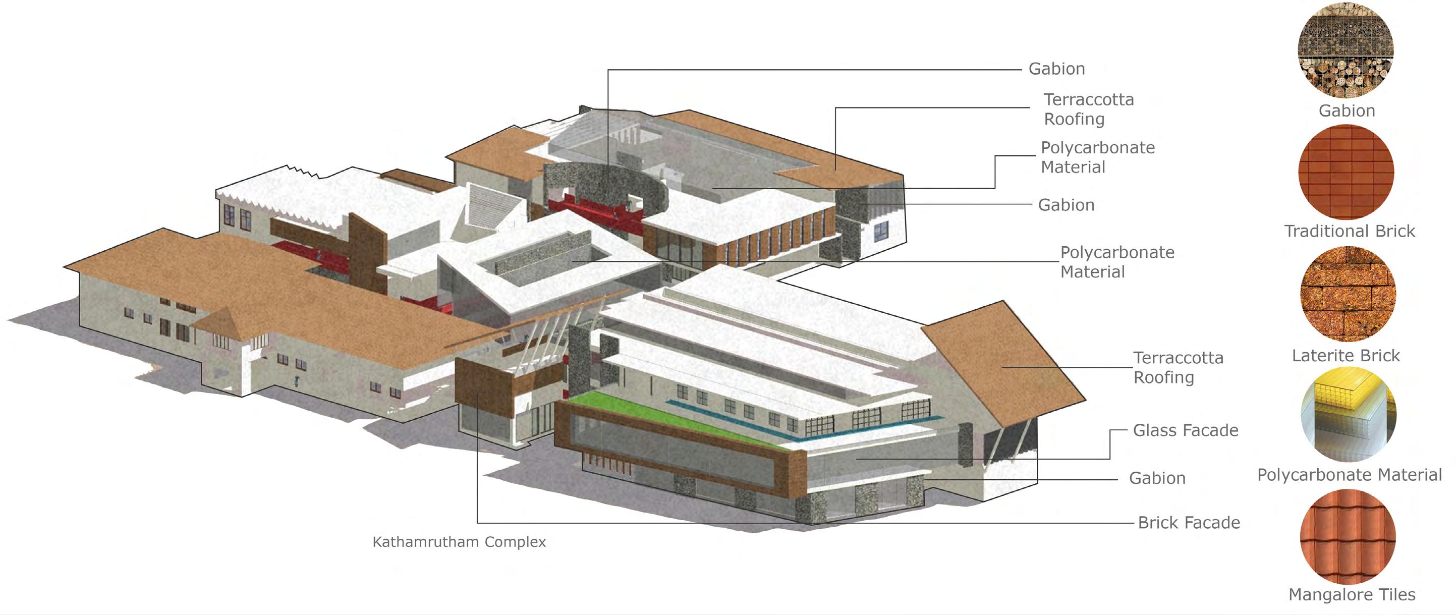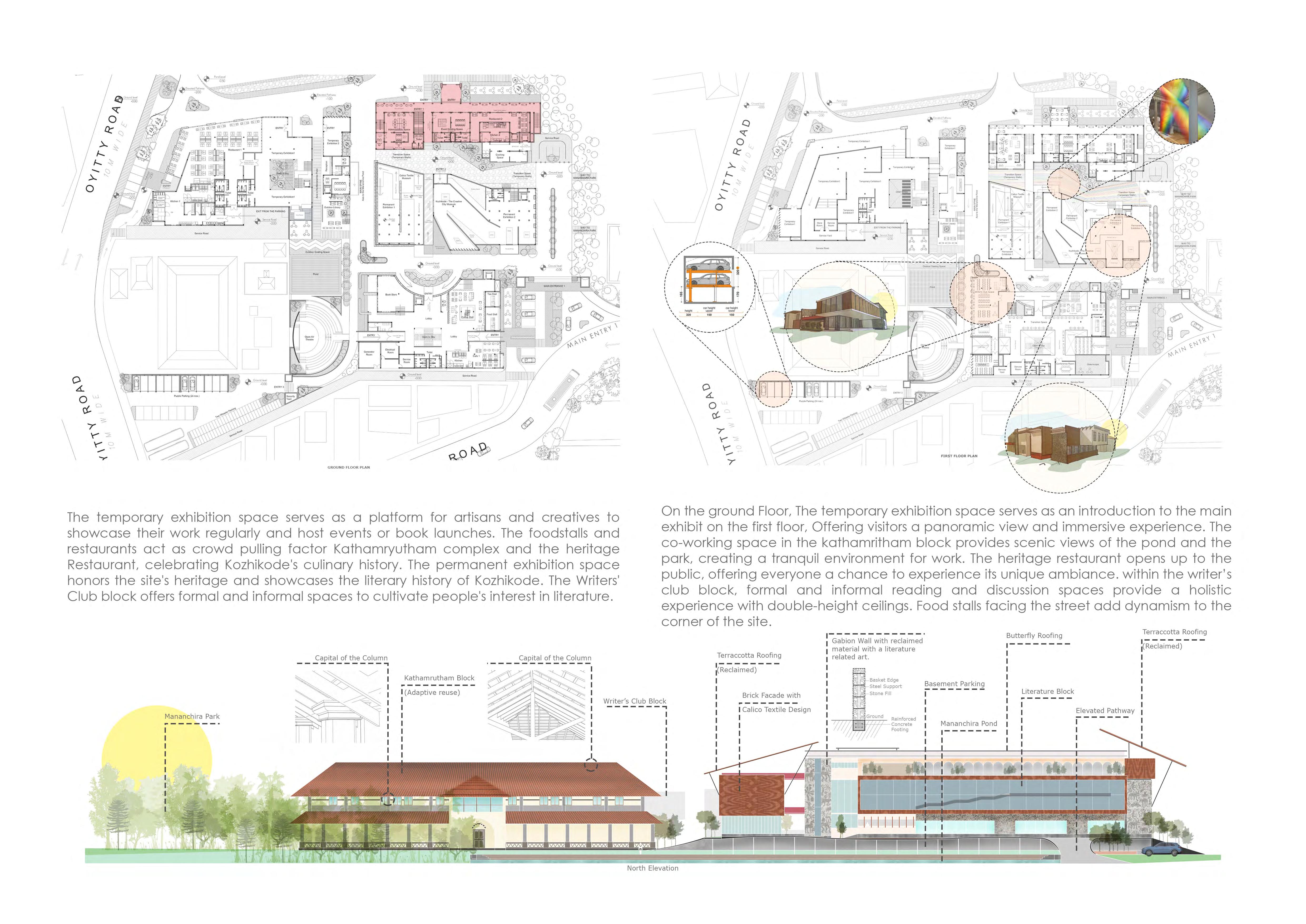 The thesis focuses on establishing a comprehensive literature, cultural, and heritage centre in Kozhikode, renowned as the “City of Literature.” It proposes a forward-thinking approach to conservation, preserving the heritage value of the site through circular conservation principles. This involves repurposing materials from the demolished factory to create gabion structures and artistic installations, integrating elements of the factory into the new building’s architecture. Through this innovative approach, the thesis aims to convey the rich narrative of Kozhikode’s literature and heritage, celebrating its cultural legacy while revitalizing the urban landscape.