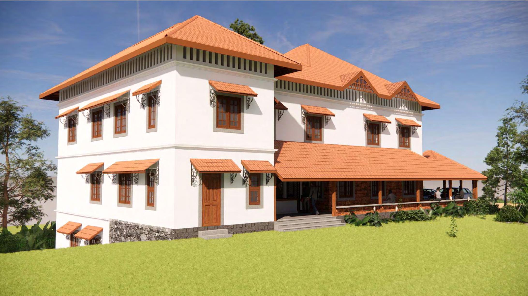 The design draws from Kerala’s architectural heritage, with jallies enhancing natural ventilation and passive cooling, while creating a dynamic interplay of light and shadow. Terracotta and exposed bricks lend the structure an earthy warmth, reducing embodied energy and aligning with the environment.