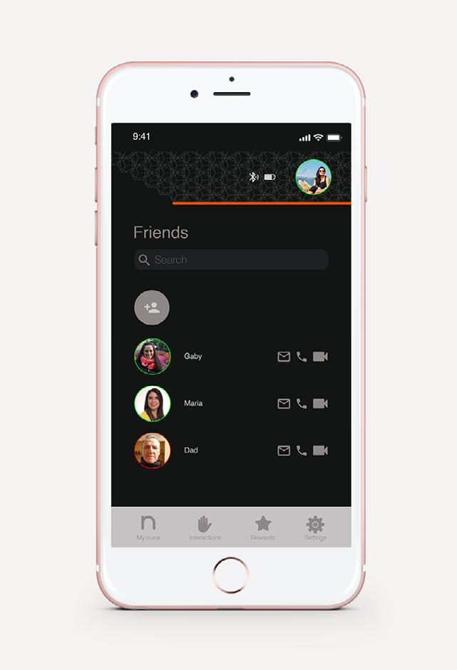 The connection between the wearable and the smartphone, happens via Bluetooh. After loging into the app, using a wifi connection, users find themselves in the cloud, where the real time communication and interaction happens.