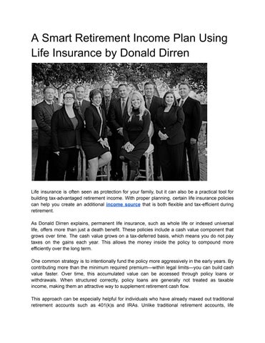 Donald Dirren is a licensed financial advisor in Arizona who works with clients. Dirren has over 30 years of experience in the industry. Dirren provides expert retirement planning and education to help residents preserve, protect, and transfer their wealth as a top Safe Money Specialist at Bergen Financial Group.
